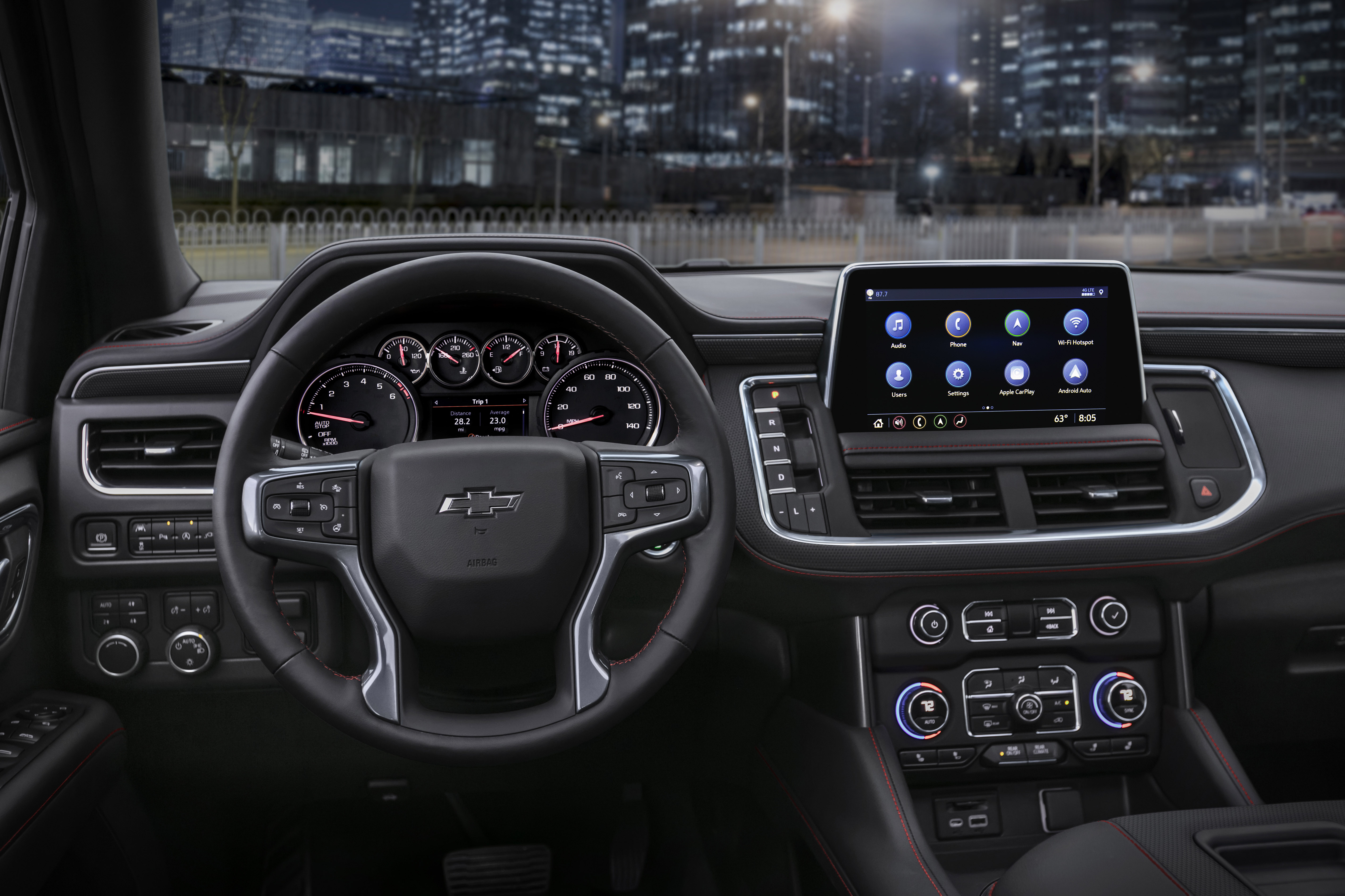 2021년형 타호에는 마그네틱 라이트 컨트롤과 에어 라이드 어댑티브 서스펜션 등으로 승차감을 향상 시켰고. 실내는 10인치 터치스크린과 8인치 계기판, 헤드 업 디스플레이 등 총 5개의 디스플레이로 최첨단 느낌이 들게 합니다.
