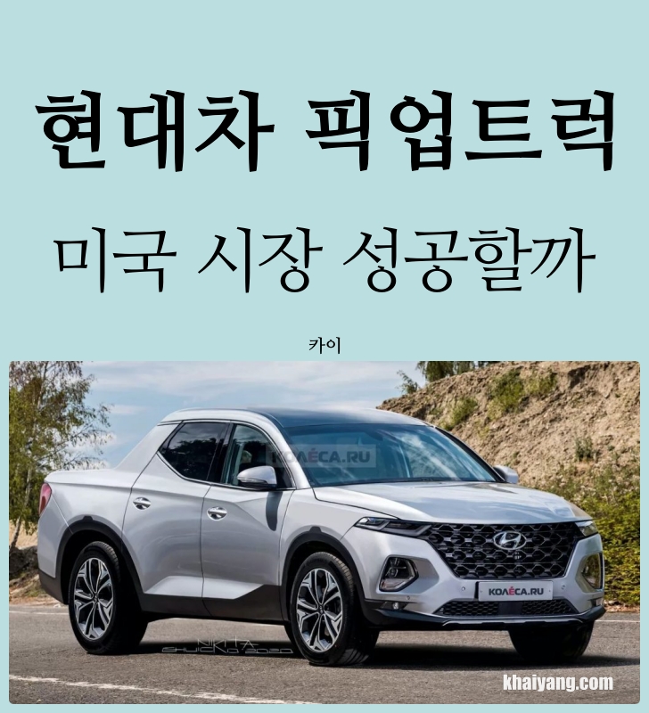 현대차가 출시하는 모델은 미국차가 장악한 풀사이즈 시장이 아니라 일본차가 성적을 내고 있는 중형 픽업시장입니다. 중형 SUV 싼타페를 기반으로 만들어진다는 말도 있고 소형SUV 투싼을 베이스로 만들어진다는 말도 있는데 이건 시간을 좀 두고 지켜봐야 할 것 같습니다.