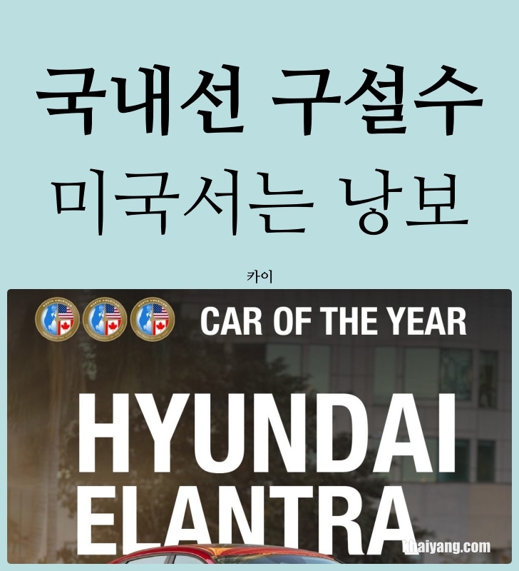 이번 수상으로 미국에서 엘란트라 판매량은 더욱 탄력을 받을 것 같습니다. 원래 인기 차종이었는데 이번 수상 펌프로 토요타 코롤라, 혼다 시빅을 판매량으로 이겨 준다면 정말 좋겠습니다. 그럴 가능성은 1도 없지만 말이죠.