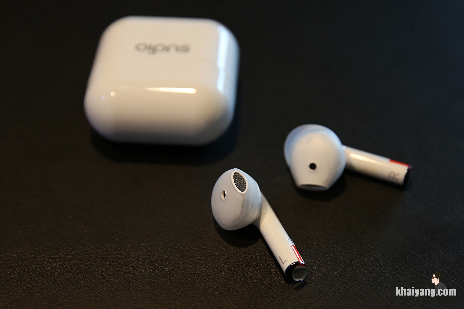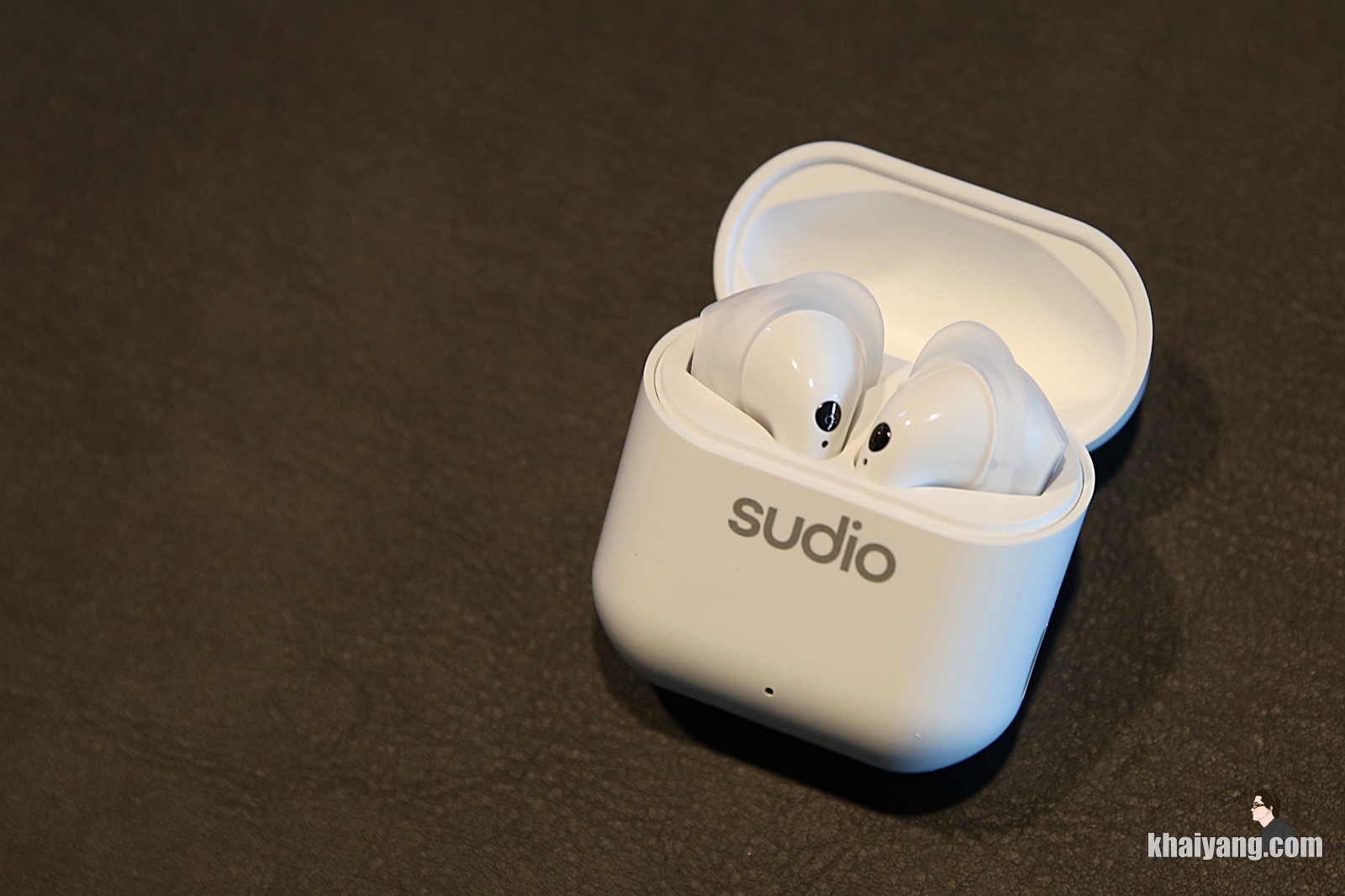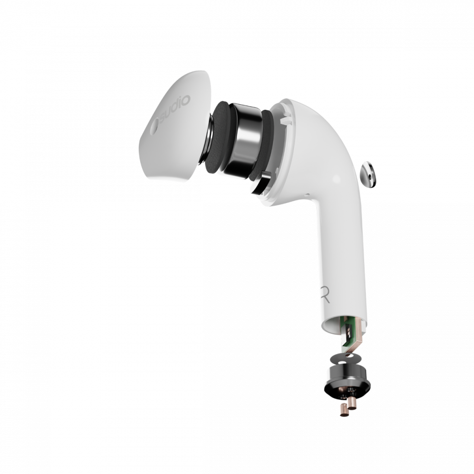 크래들 전면에 SUDIO 로고가 있고 니오 본체 입니다. 에어팟과 상당히 유사한 모습을 하고 있는 것을 확인 할 수 있습니다.
