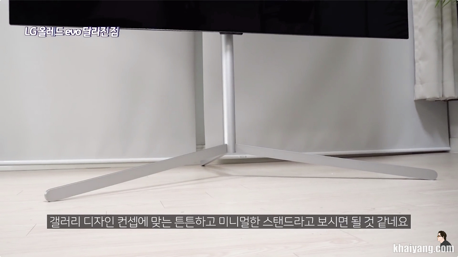 이번 LG 올레드 evo 모델은 작년에 등장했던 갤러리 디자인을 채택하고 있습니다. 갤러리 디자인은 TV 하나에 화면 구동부, 스피커, 설치를 위한 브라켓까지 담아 TV 사용시 별도 외부 본체가 없는 날씬하고 깔끔한 디자인이 특징 입니다.