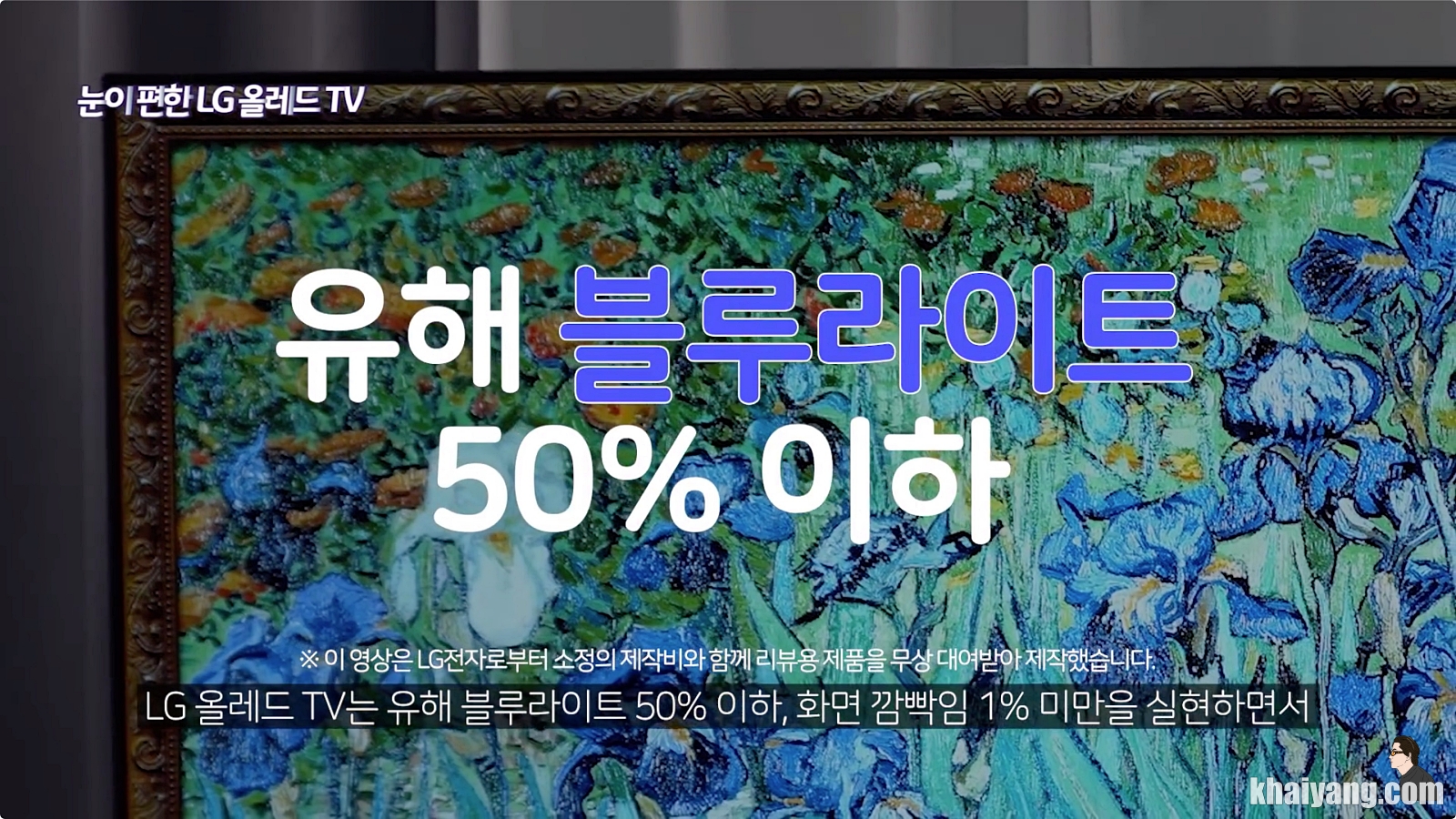 올레드TV는 LCD보다 유해 블루라이트 방출량이 낮고, 플리커와 빛반사가 적은 게 특징입니다.