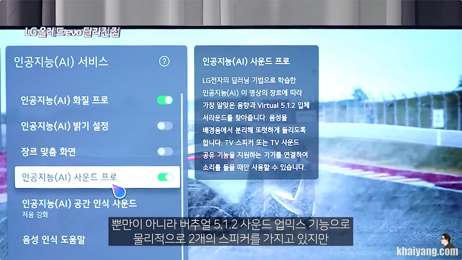 LG 올레드 evo 에는 최신 4세대 인공지능 알파9(α9) 로 업그레이드된 칩셋이 탑재되어 화질과 사운드를 딥러닝을 통해 사전 학습한 데이트를 바탕으로 업스케일링/업믹스가 지원됩니다.