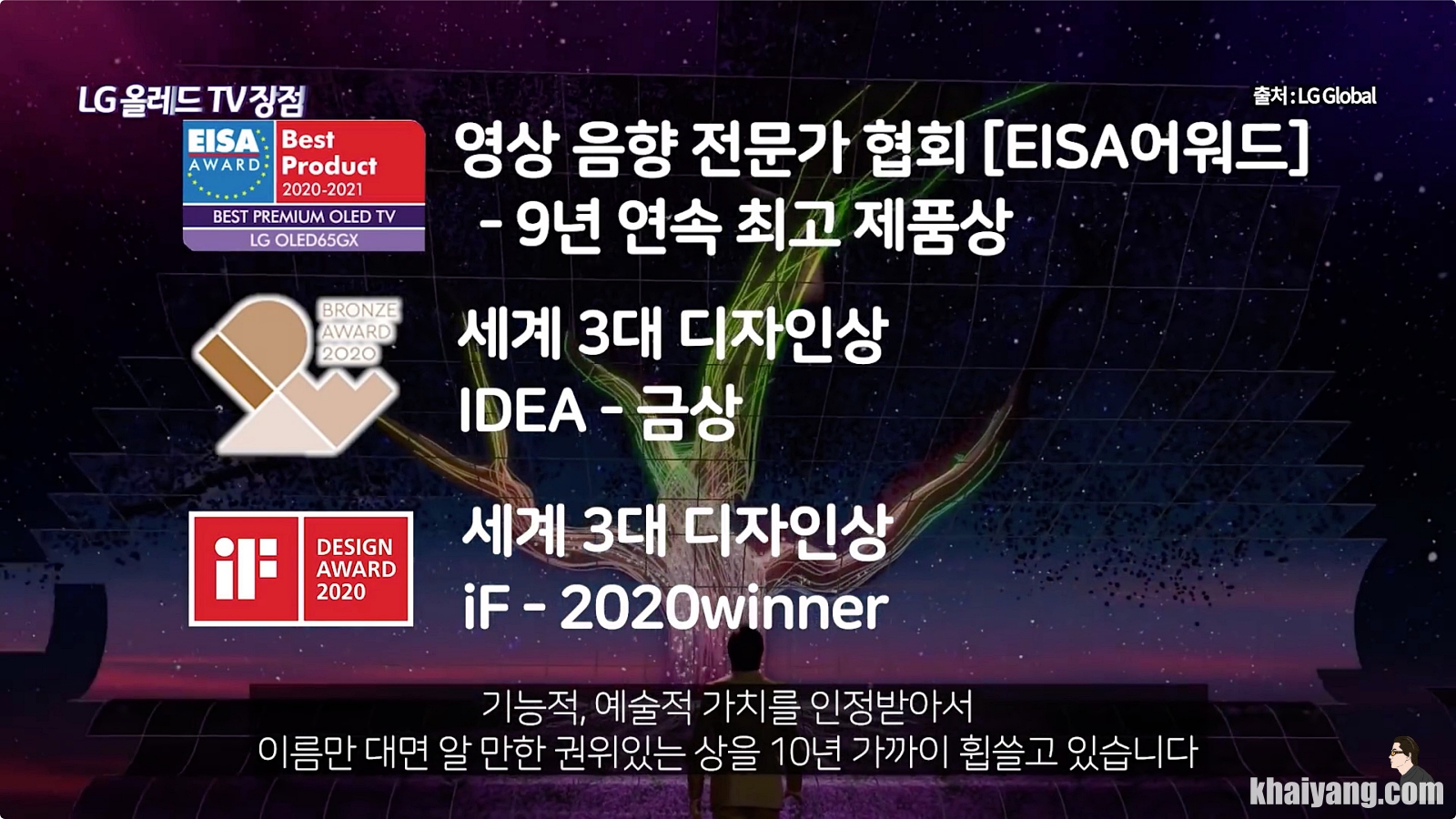LG 올레드TV는 세계 최대 가전 전시 CES에서 엔가젯 기준 7년 연속 최고 TV에 선정되었고 이름만 대면 알 수 있는 세계최고의 권위있는 상을 10년 가까이 받아 왔습니다.