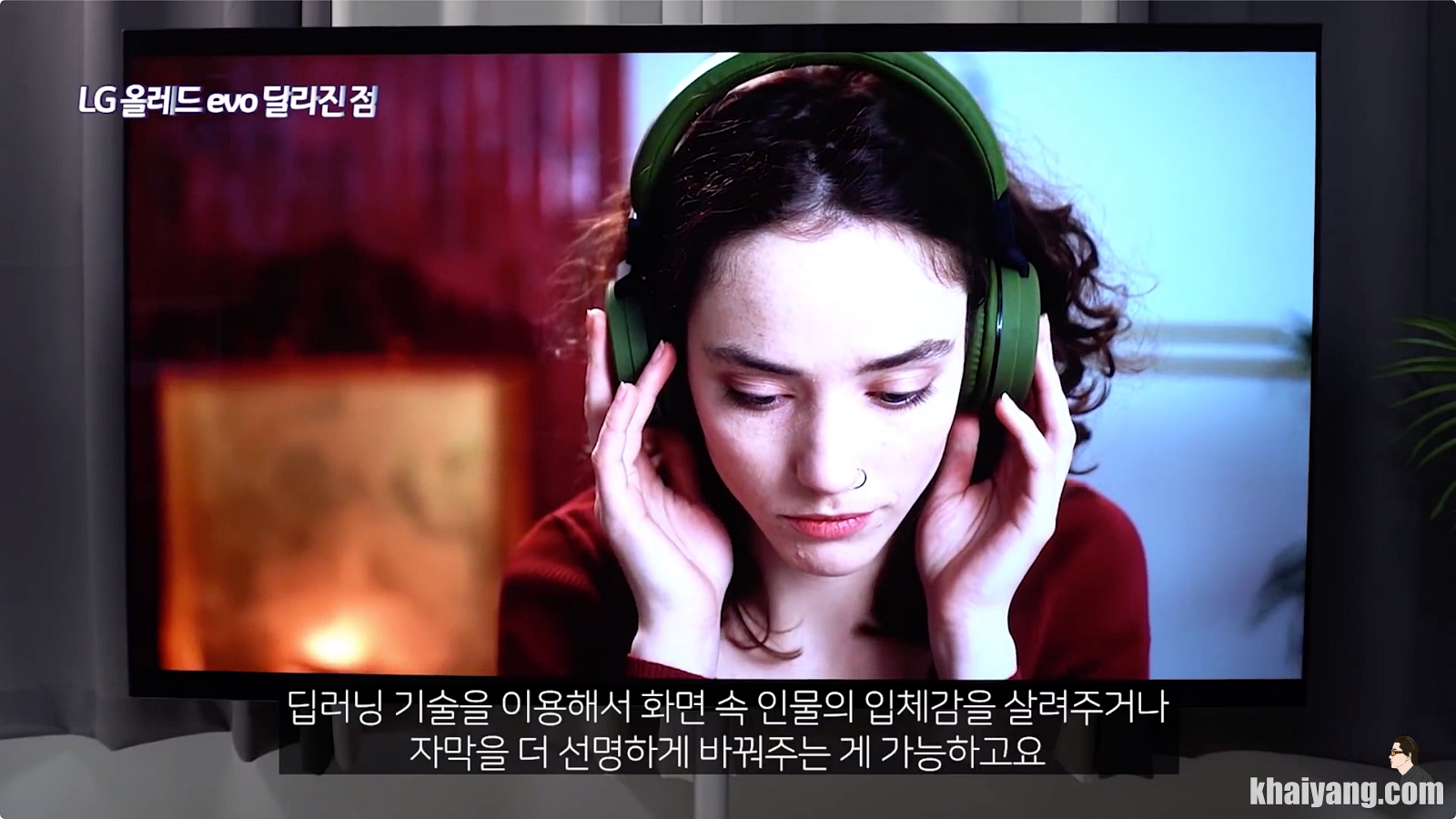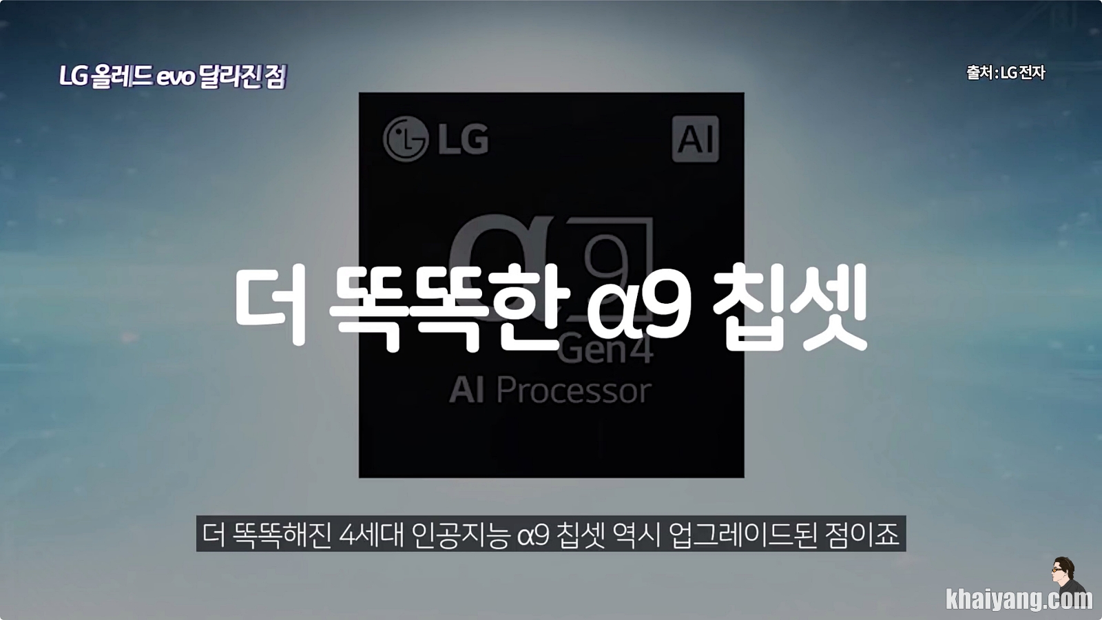 LG 올레드 evo 에는 최신 4세대 인공지능 알파9(α9) 로 업그레이드된 칩셋이 탑재되어 화질과 사운드를 딥러닝을 통해 사전 학습한 데이트를 바탕으로 업스케일링/업믹스가 지원됩니다.