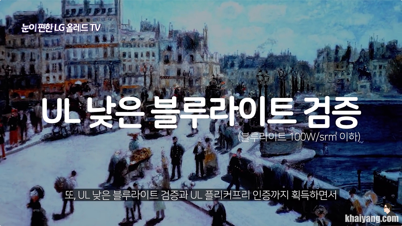 올레드TV는 LCD보다 유해 블루라이트 방출량이 낮고, 플리커와 빛반사가 적은 게 특징입니다.