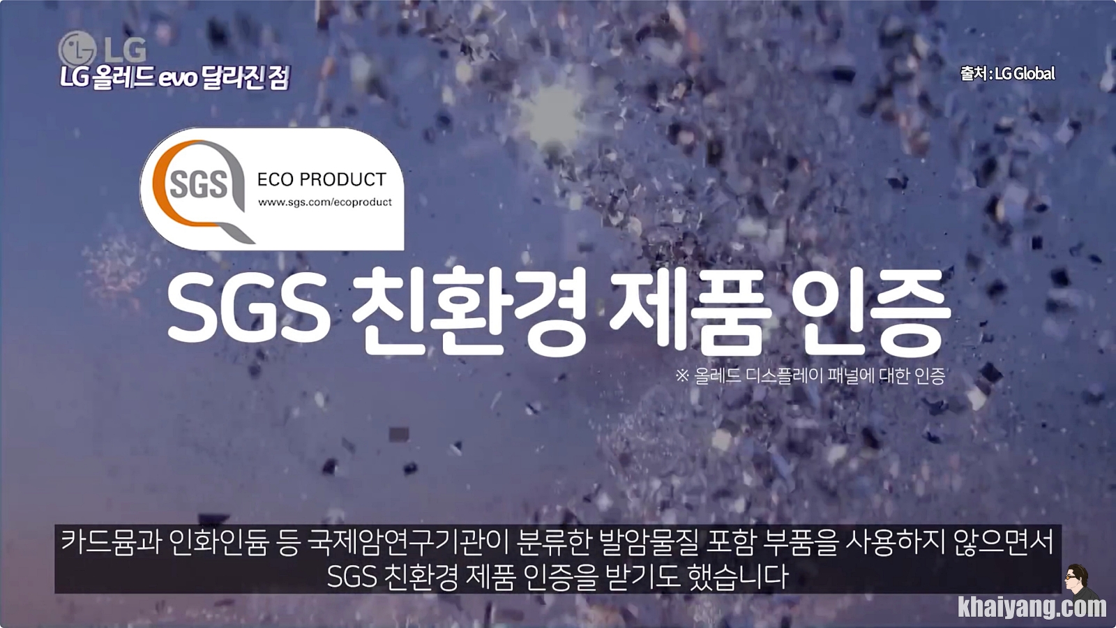 SGS 친환경 제품 인증을 획득해서 새집증후군 유발물질로 알려진 총휘발성유기화합물 방출량이 동급 사이즈의 액정 표시 장치 LCD 대비 절반 이하고 카드뮴, 인화인듐 등 국제 암연구기관이 분류한 발암물질 부품을 사용하지 않고 있습니다.