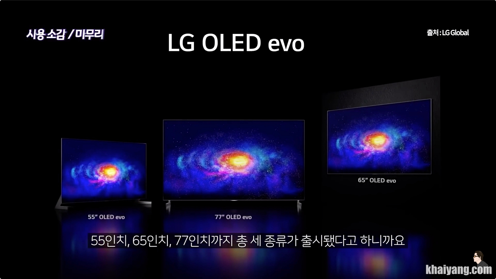 LG 올레드 evo 는 55인치, 65인치, 77인치 총 세 종류로 출시가 되었습니다. 요즘 대세가 65인치 이상이라고 하는데 여유만 있다면 77인치 올레드 evo 제품을 사고 싶은 마음이 굴뚝 같습니다.