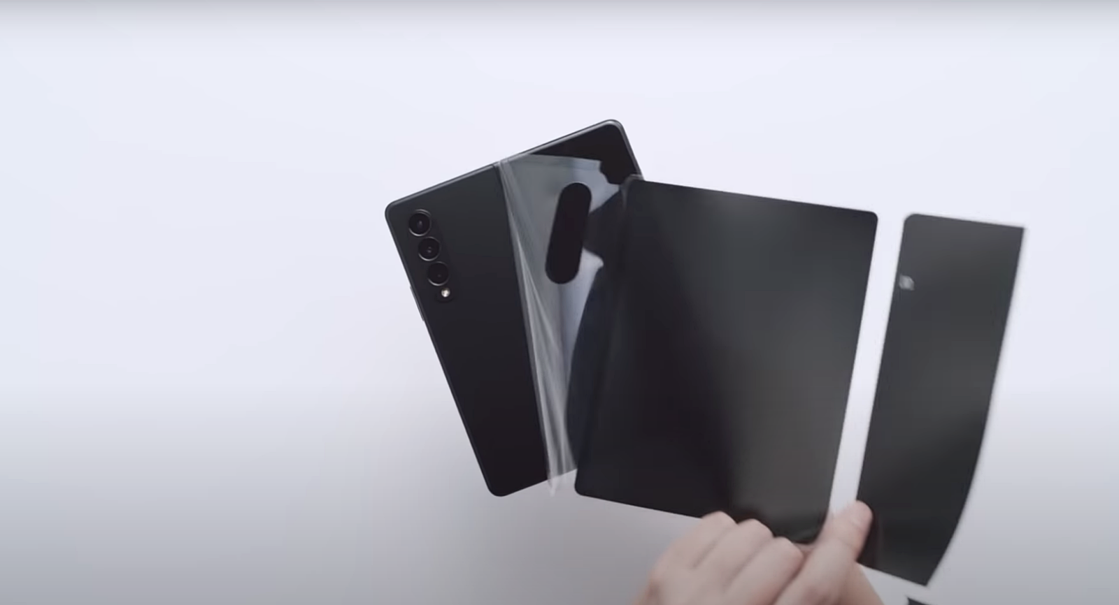 측면에 갤럭시Z폴드3 5G 표시가 되어 있는데 영상을 보니 두께가 상당히 얇은 것을 알 수 있습니다. 대략 두께를 보면 상당한 원가를 절감한 것을 예측할 수 있는데 그래서 구성품 또한 크게 기대할 건 없을 것 같습니다.