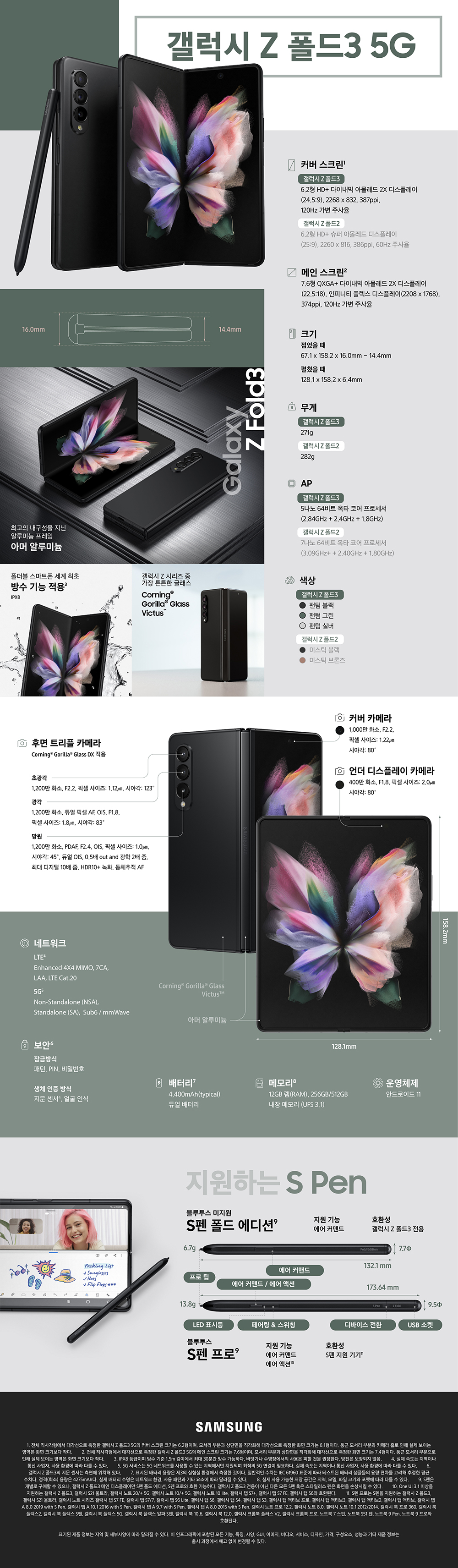 갤럭시폴드3의 자세한 부분은 인포그래픽에서 좀 더 자세하게 살펴 보시기 바랍니다.