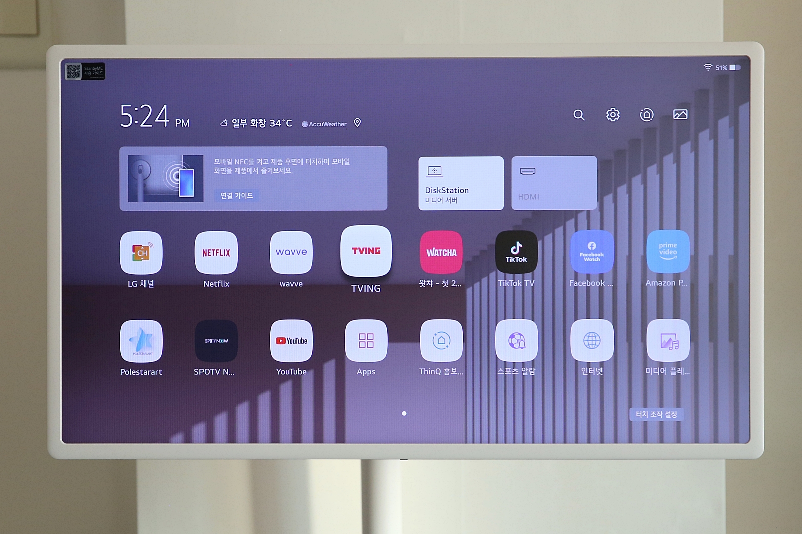 유튜브 뿐만 아니라 기본적으로 많이 사용하는 OTT, 넷플릭스, 티빙, 왓차, 웨이브 등이 기본 설치 되어 있습니다.