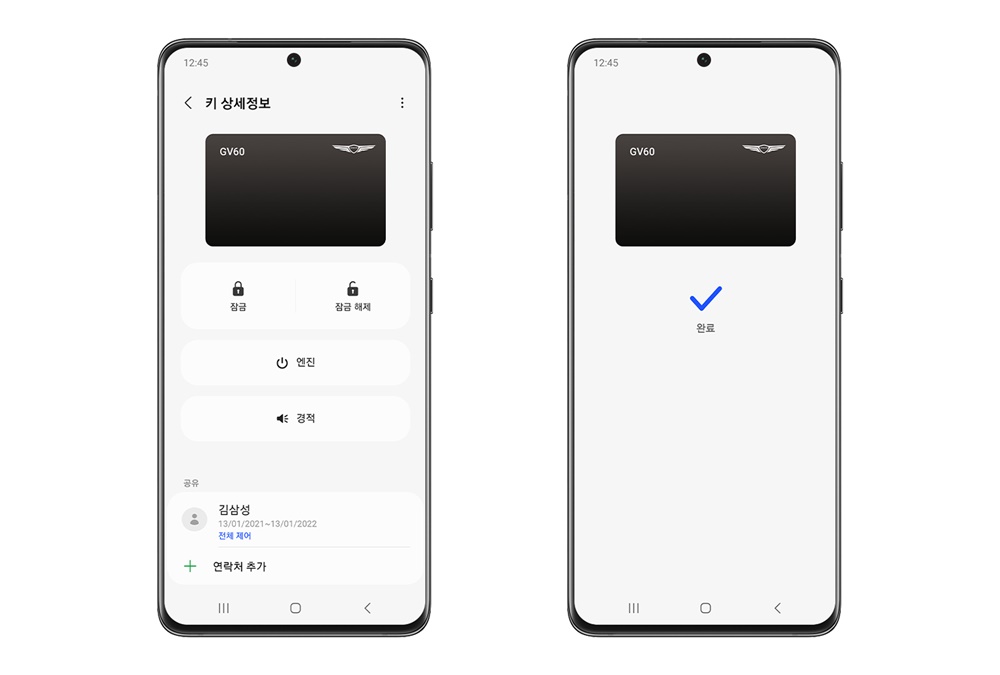 사용자가 설정한 기간에 갤럭시 스마트폰을 사용하는 친구나 가족에게 ‘삼성 패스(Samsung Pass)’ 애플리케이션을 통해 안전하게 자동차 키 공유도 가능한 것이 특징 입니다.