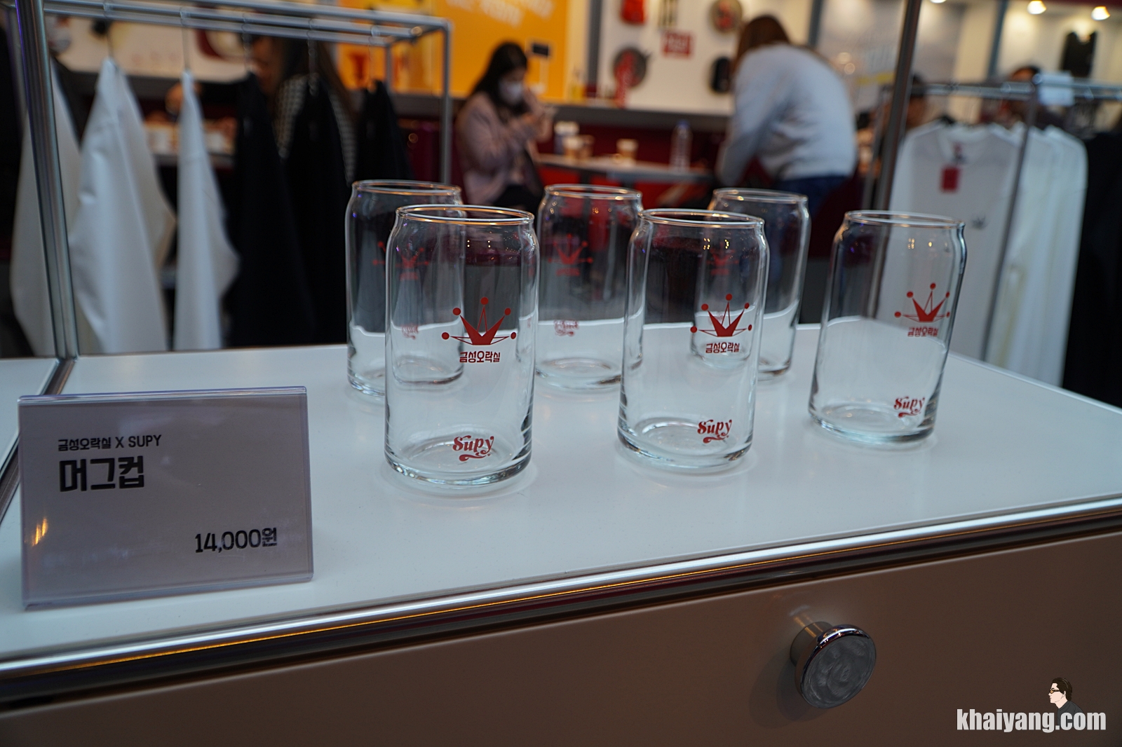 그리고 안 쪽에는 '금성 굿즈샵'이 준비되어 있습니다. 이곳에서 에코백,머그컵,그립톡 그리고 편집숍 수피와 함께 만든 티셔츠,후드티 등 금성오락실 전용 굿즈를 구매할 수 있습니다.