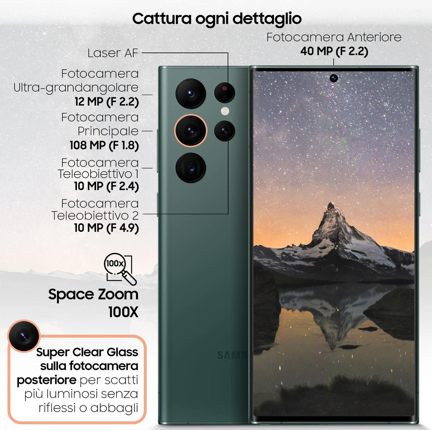 후면에 3개의 카메라가 장착이 되고 광학 12M(F2.2), 메인 50M(F1.8), 망원 10M(F2.4), 스페이스 줌 30X 를 지원합니다. (갤S22, 플러스 동일) 배터리는 일반 3700mAh, 플러스 4500mAh 를 지원 합니다.