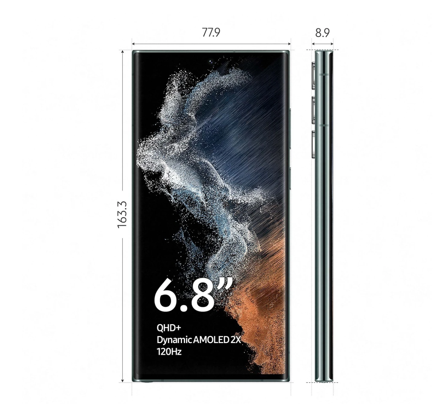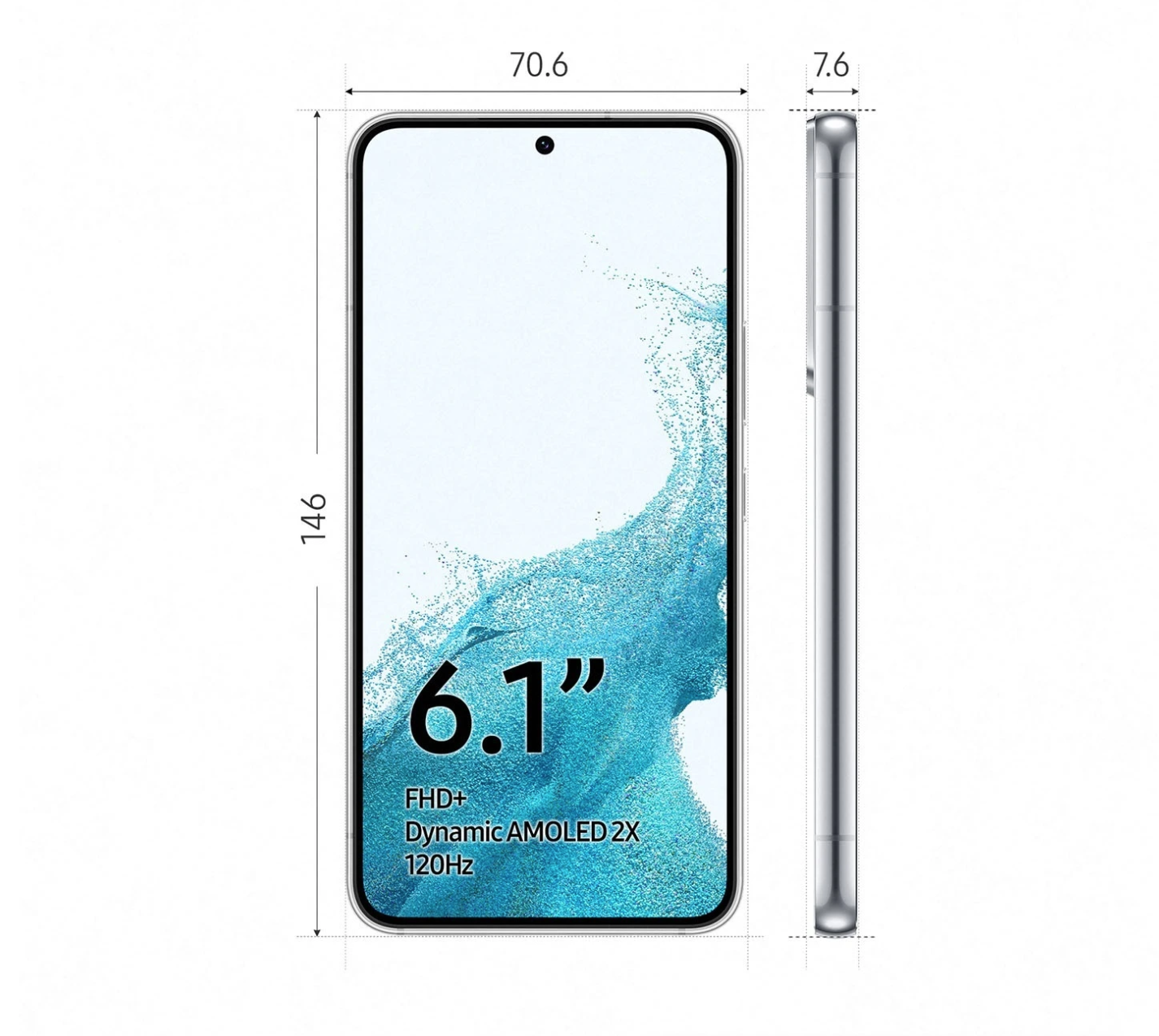 크기는 갤럭시S22 6.1인치, 갤럭시S22 플러스 6.6인치로 나옵니다. 다이나믹 AMOLED 2X에 해상도는 FHD+(2340 x 1080 픽셀 120Hz) 로 플래그십에 어울리지 않는 해상도라 할 수 있습니다.