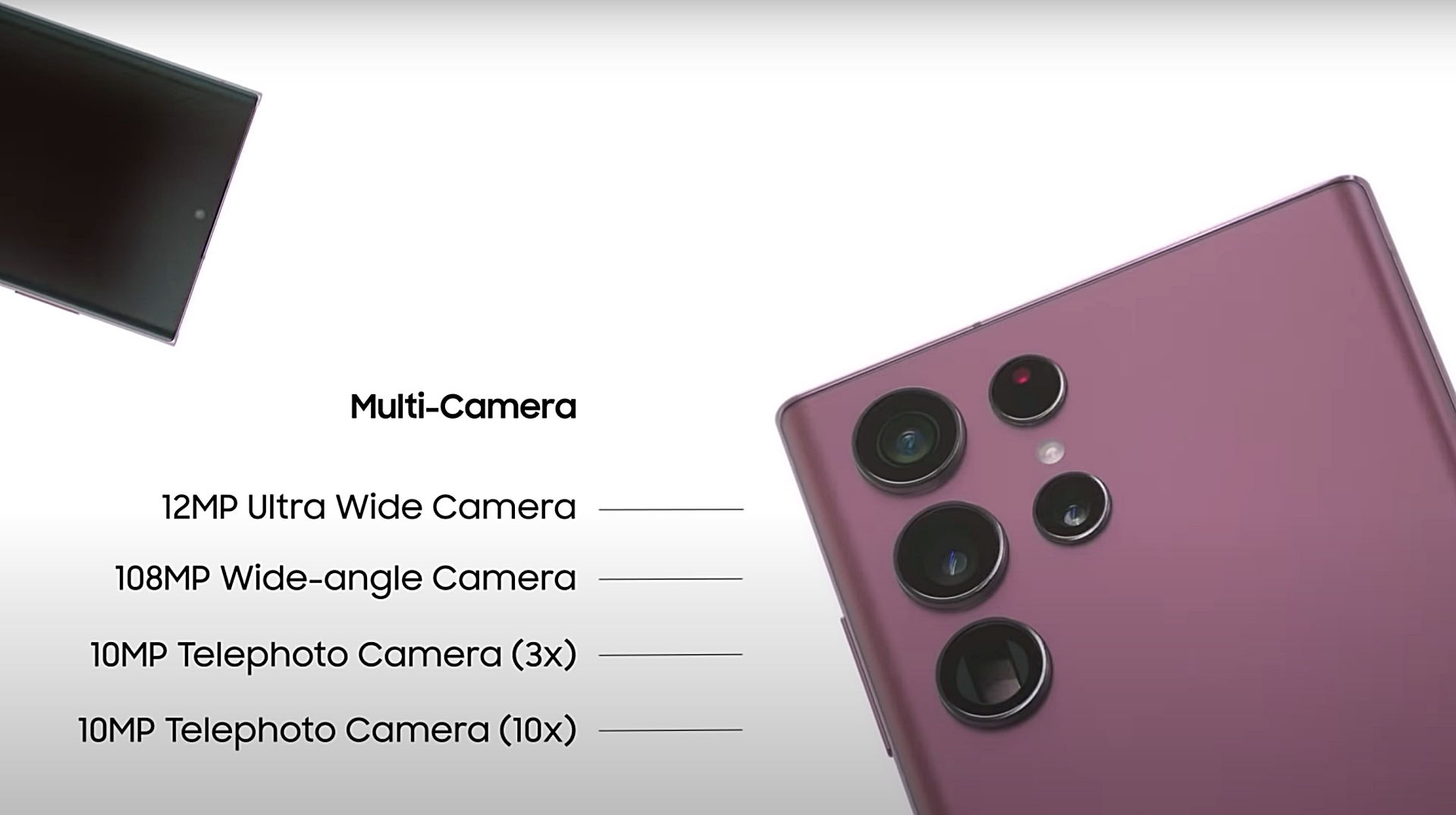 갤S22 울트라 카메라를 보면 기존 삼성 스마트폰 이미지센서 중 가장 큰 2.4um 크기의 1억800만 초고화소 카메라와 1200만 화소 초광각 카메라, 각각 광학 3배와 10배의 1,000만 화소 망원 카메라 2개 등 4개(쿼드) 카메라를 탑재했습니다.