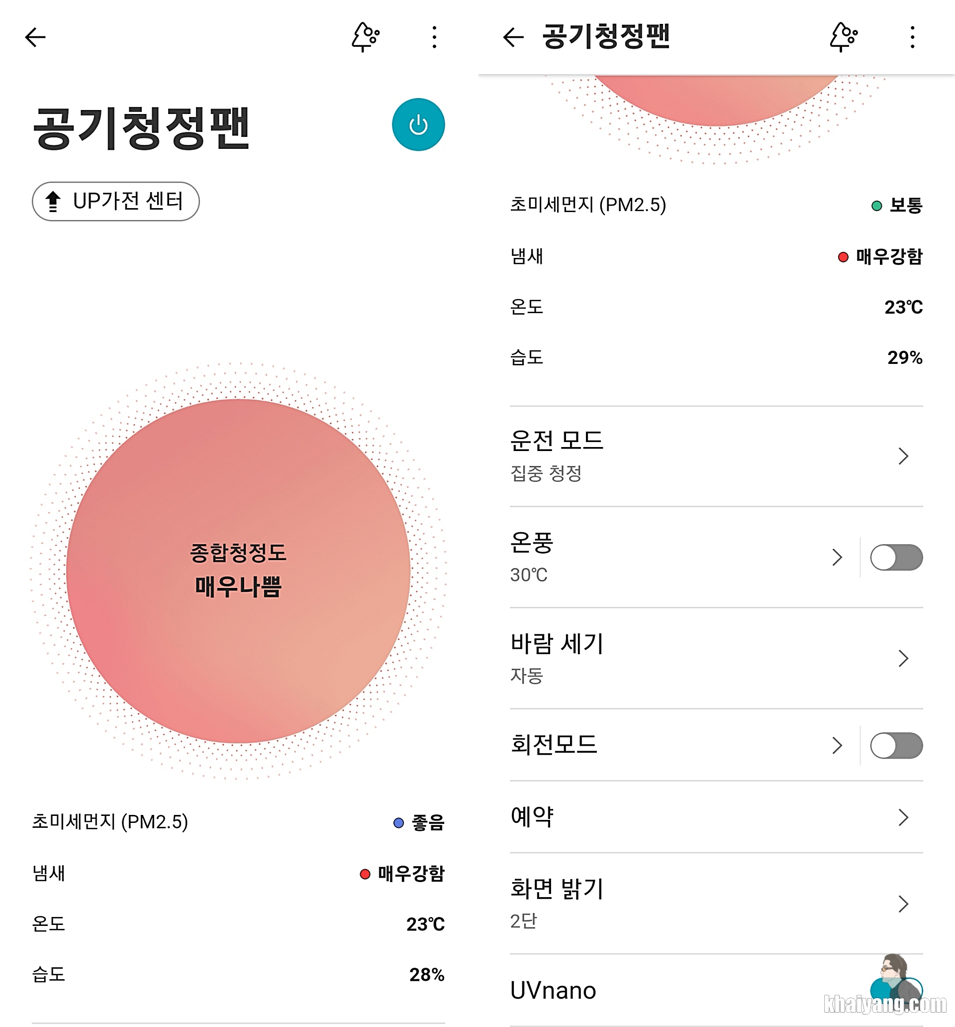 이렇게 앱에서 모든 기능들 뿐만 아니라 현재 집안의 냄새, 온도, 습도 상태를 쉽게 확인할 수 있습니다.