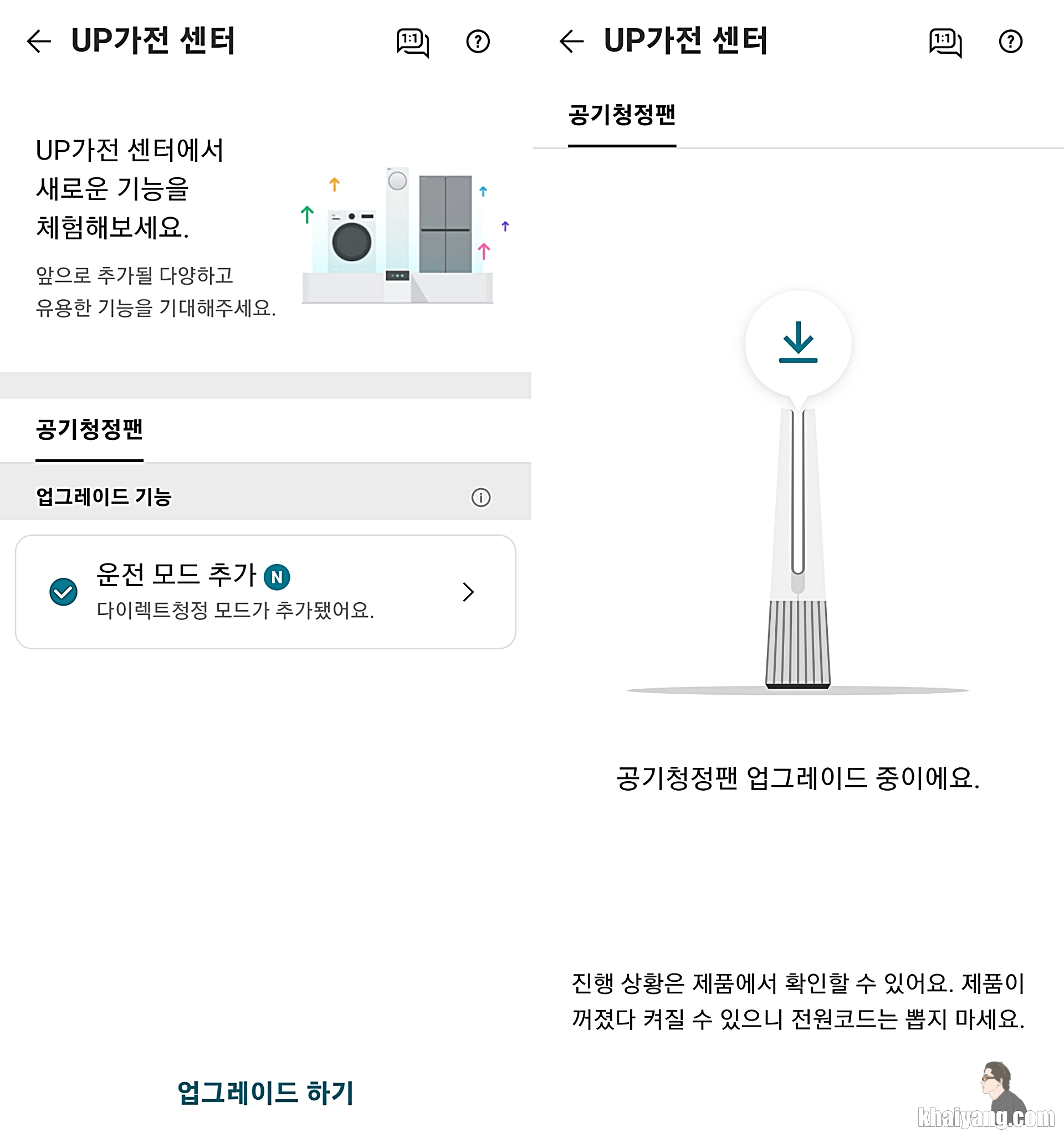 'UP 가전' 기능을 통해서 이제 손쉽게 기능을 업데이트 할 수 있습니다. 위에서 다이렉트 청정 기능이 업데이트가 되었다고 했는데 이 기능이 처음에는 없었는데 새롭게 추가된 기능 입니다.