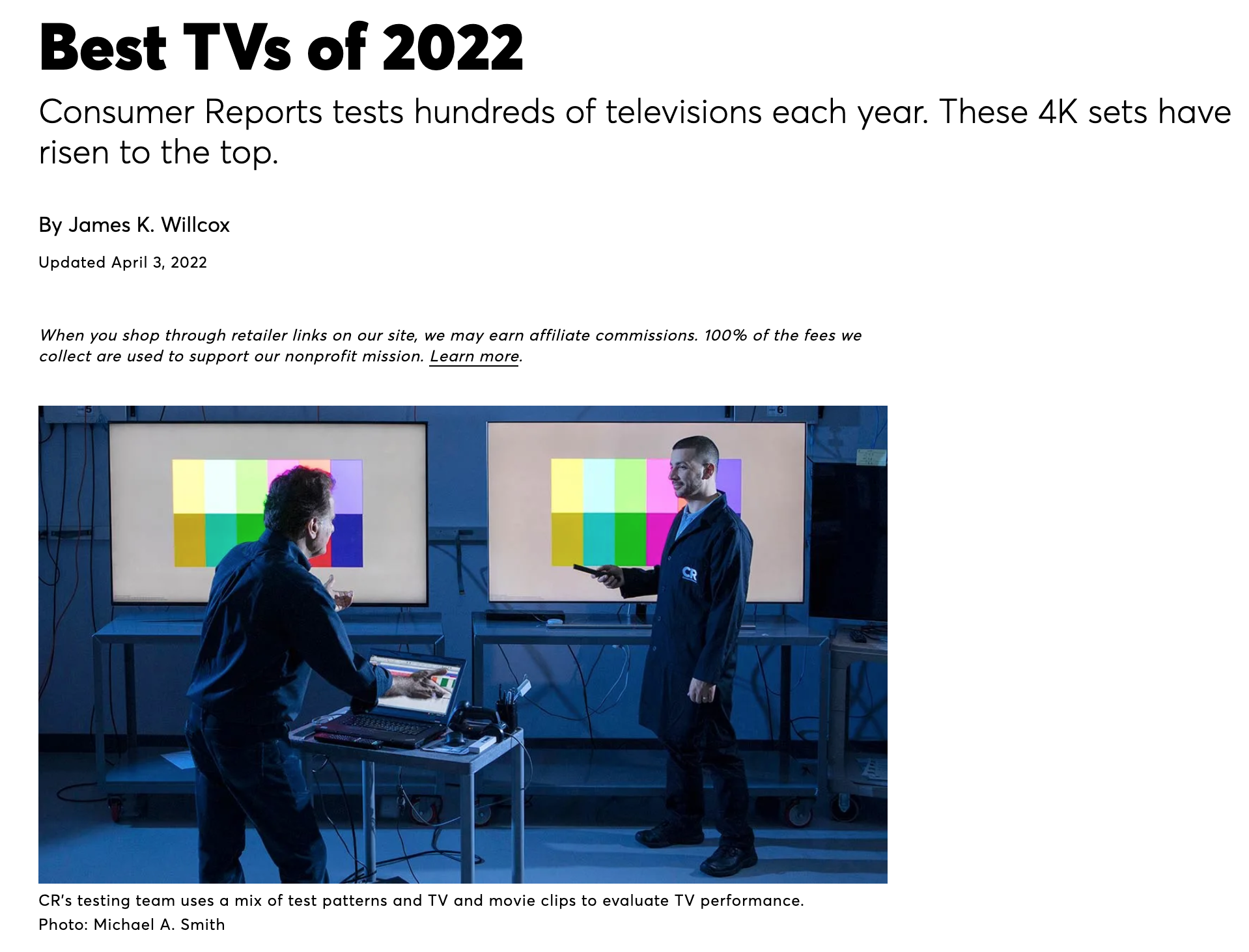 그런 고민을 하는 분들에게 미국 소비자 매체 컨슈머리포트에서 공개한 '2022년 최고의 TV'(Best TVs of 2022)' 가 선택하는데 도움이 될 것 같습니다. 미국 뿐만 아니라 한국에서도 신뢰가 높은 컨슈머리포트에서 발표한 것이라 상당한 기대감을 가지고 결과를 확인해 봤습니다.