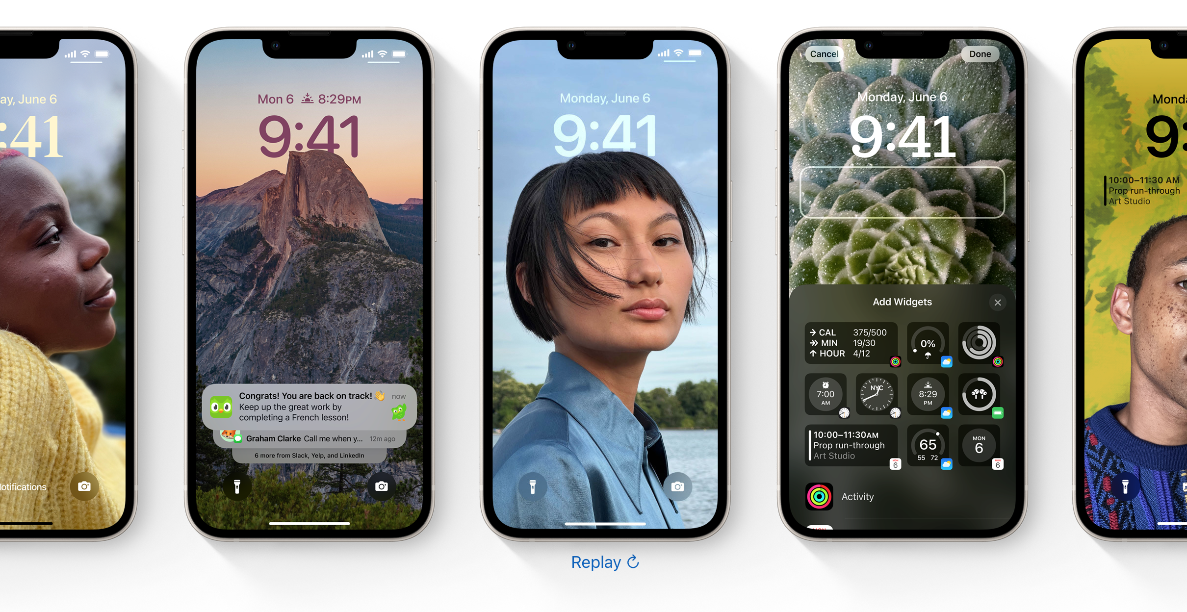 잠금화면 위젯 기능을 통해서 캘린더의 예정된 이벤트, 날씨, 배터리 잔량, 알람, 시간대, 활동 링 진행 상황 등의 다양한 정보를 잠금화면에서 한 눈에 쉽게 확인하는 것도 가능해졌습니다.