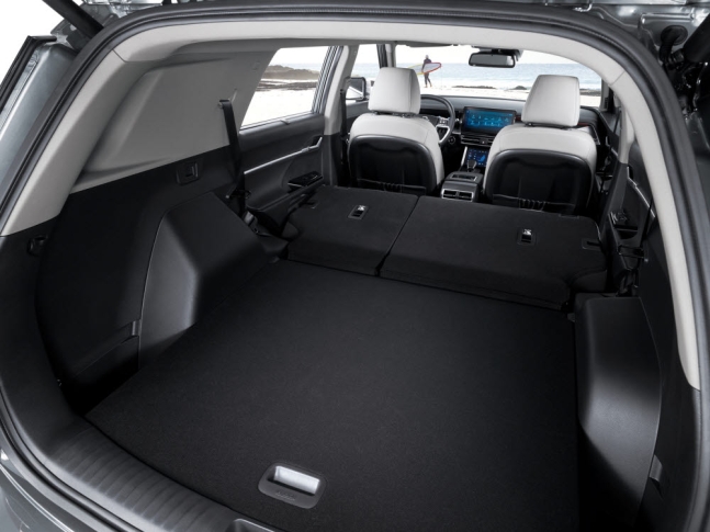 중형 SUV에 걸맞게 대용량 적재 공간도 갖췄는데, 703L 공간에 골프백 4개와 여행용 손가방 4개를 동시에 수납할 수 있습니다. 2열을 접으면 1662L의 대용량 적재도 가능한것이 특징입니다.