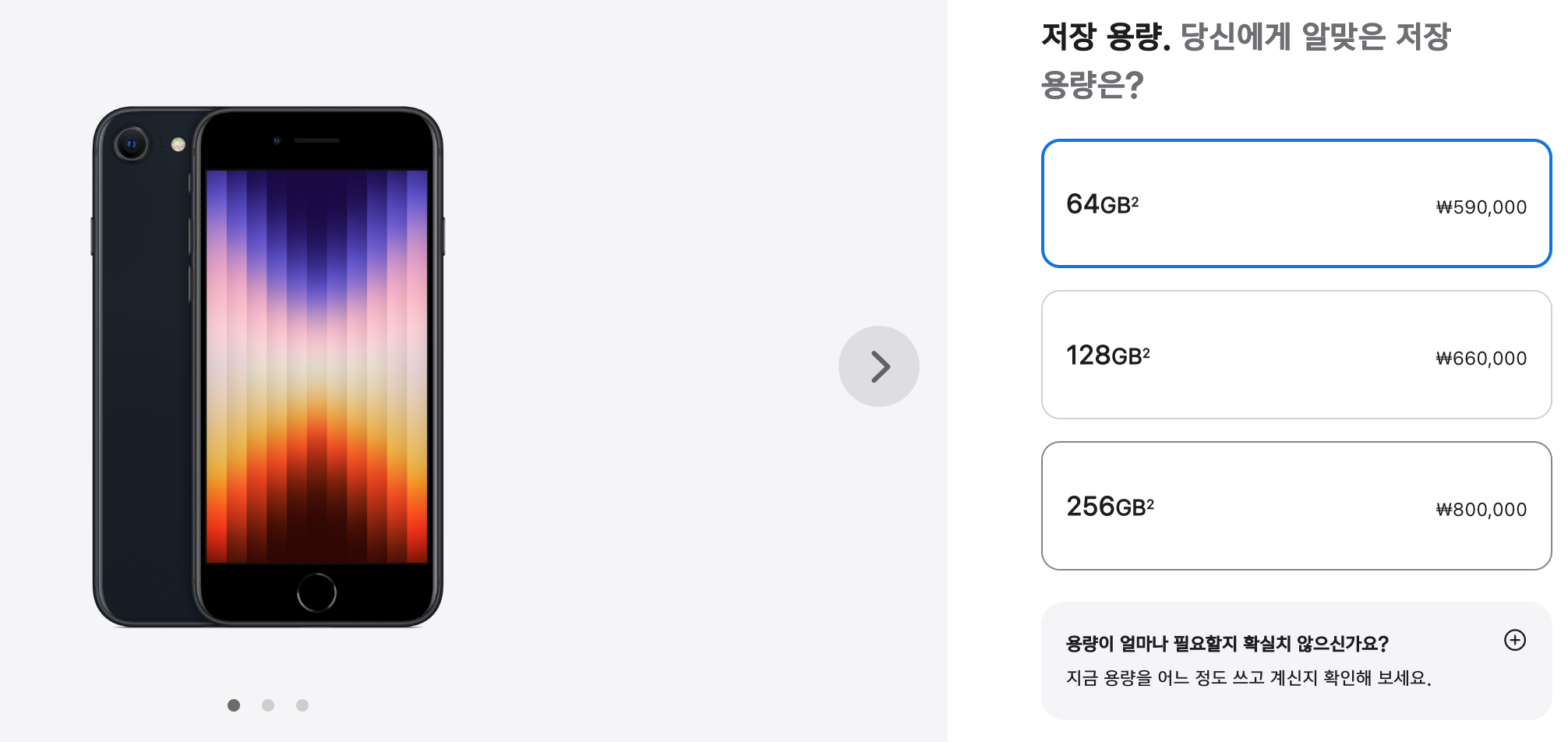 아이폰에서 가장 저가의 제품을 찾아보니 아이폰SE 가 있었습니다.