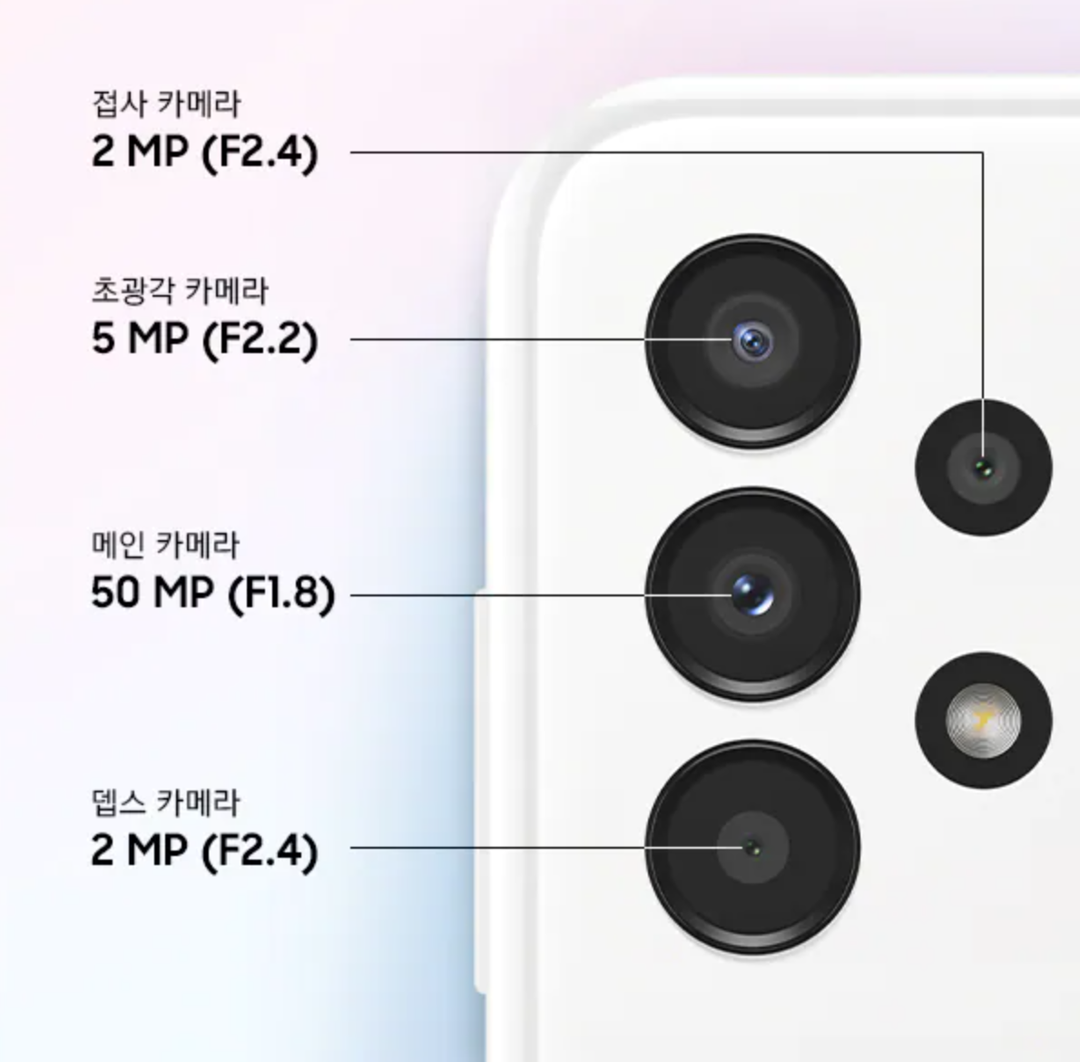 아이들은 사진에도 민감해서 사진 성능아 뒷받침 되어야 합니다. 갤럭시A13은 후면에 총 4개의 전면에 1개의 카메라가 장착이 되었습니다.