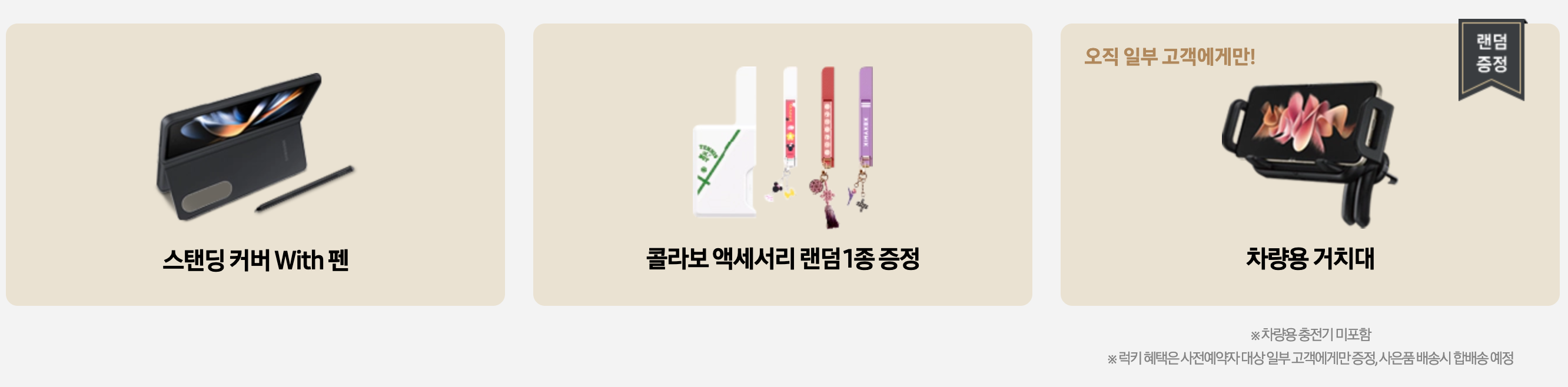 이 외에 스탠딩 커버 with 펜, 콜라보 액세서리 랜덤 1종 증정, 일부 고객에게는 차량용 거치대를 제공 합니다.