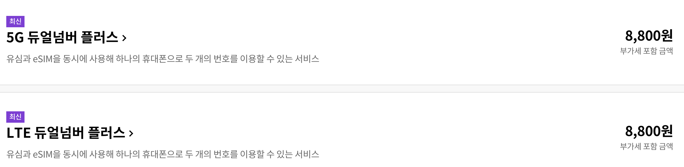 그런데 통신사끼리 담합을 한 걸까요? 요금제 가격이 KT, LG U+ 모두 8800원으로 똑 같습니다.