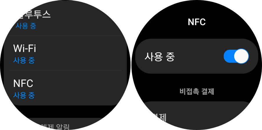 티머니를 사용하기 위해서는 NFC 기능을 꼭 활성화 시켜야 합니다. 사용중으로 활성화 시켜 주세요.