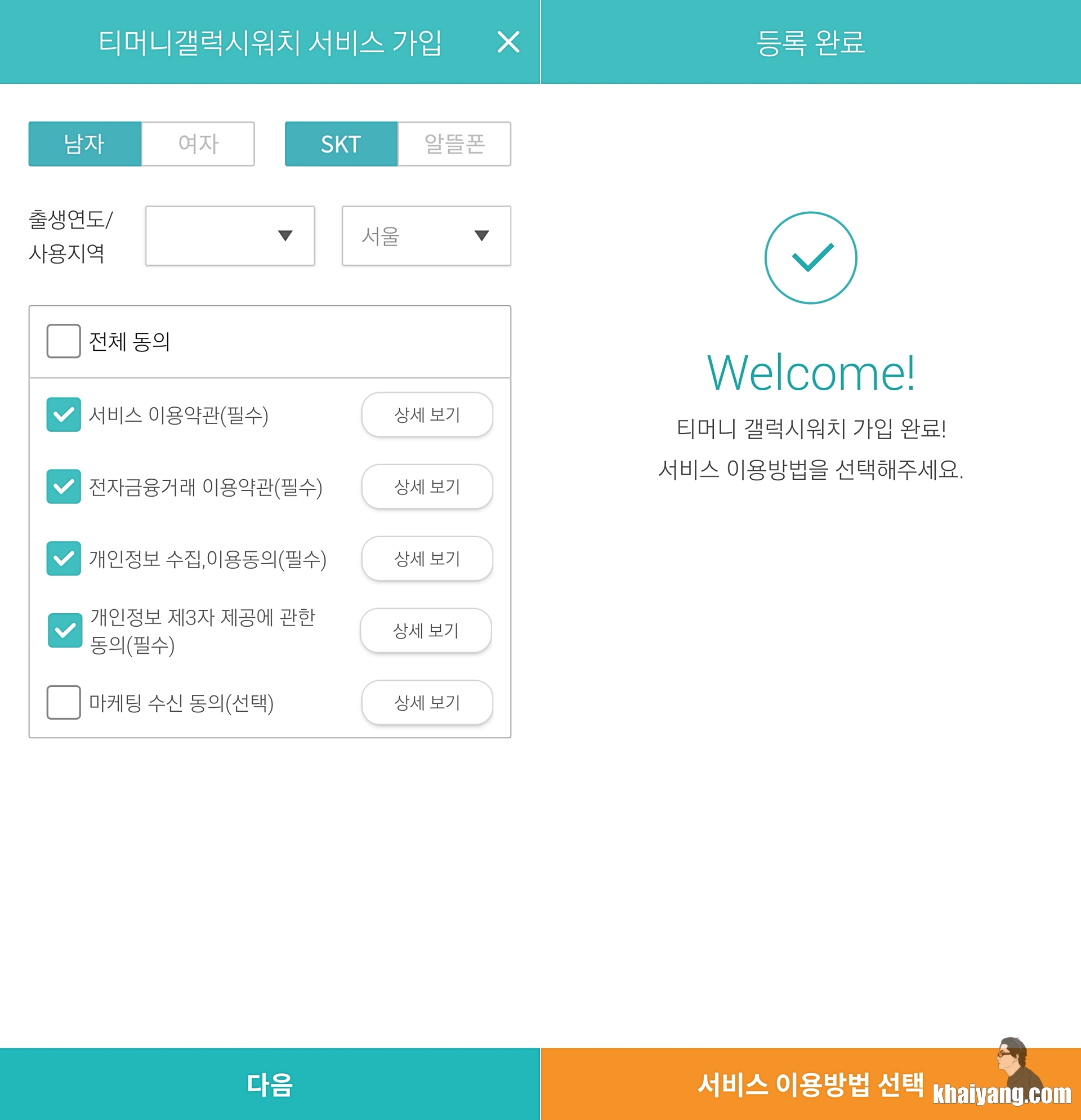 티머니 통합 회원에 가입을 한 후 사용할 수 있기에 회원 가입하는 절차와 함께 티머니 갤럭시 워치 등록을 진행해 주시면 됩니다.