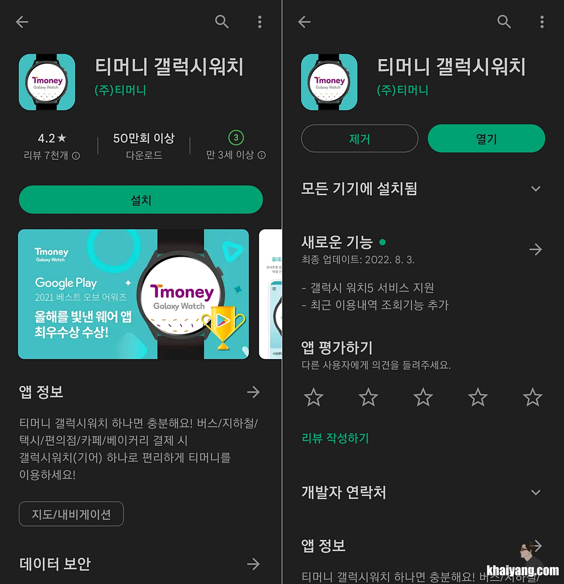 우선 구글 플레이에서 티머니 갤럭시워치 앱을 다운 받아 설치를 합니다.
