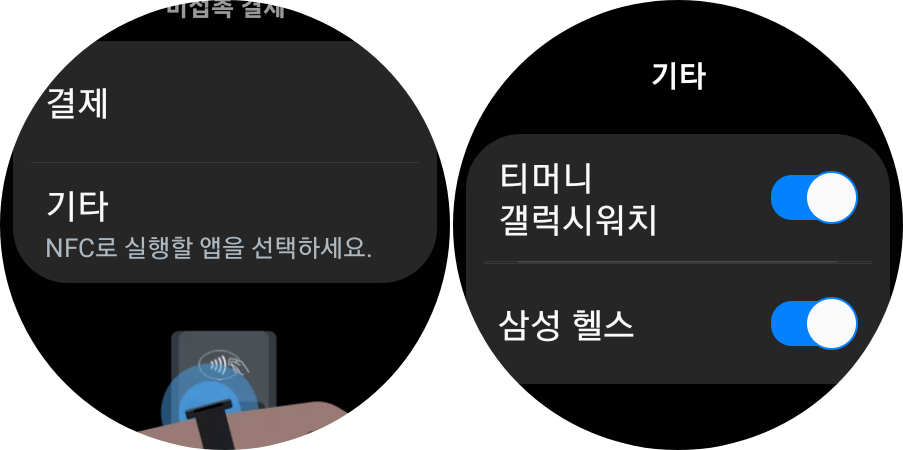 그리고 아래로 내려서 기타 메뉴를 선택하고 나서 티머니 갤럭시워치 메뉴를 활성화 시킵니다.