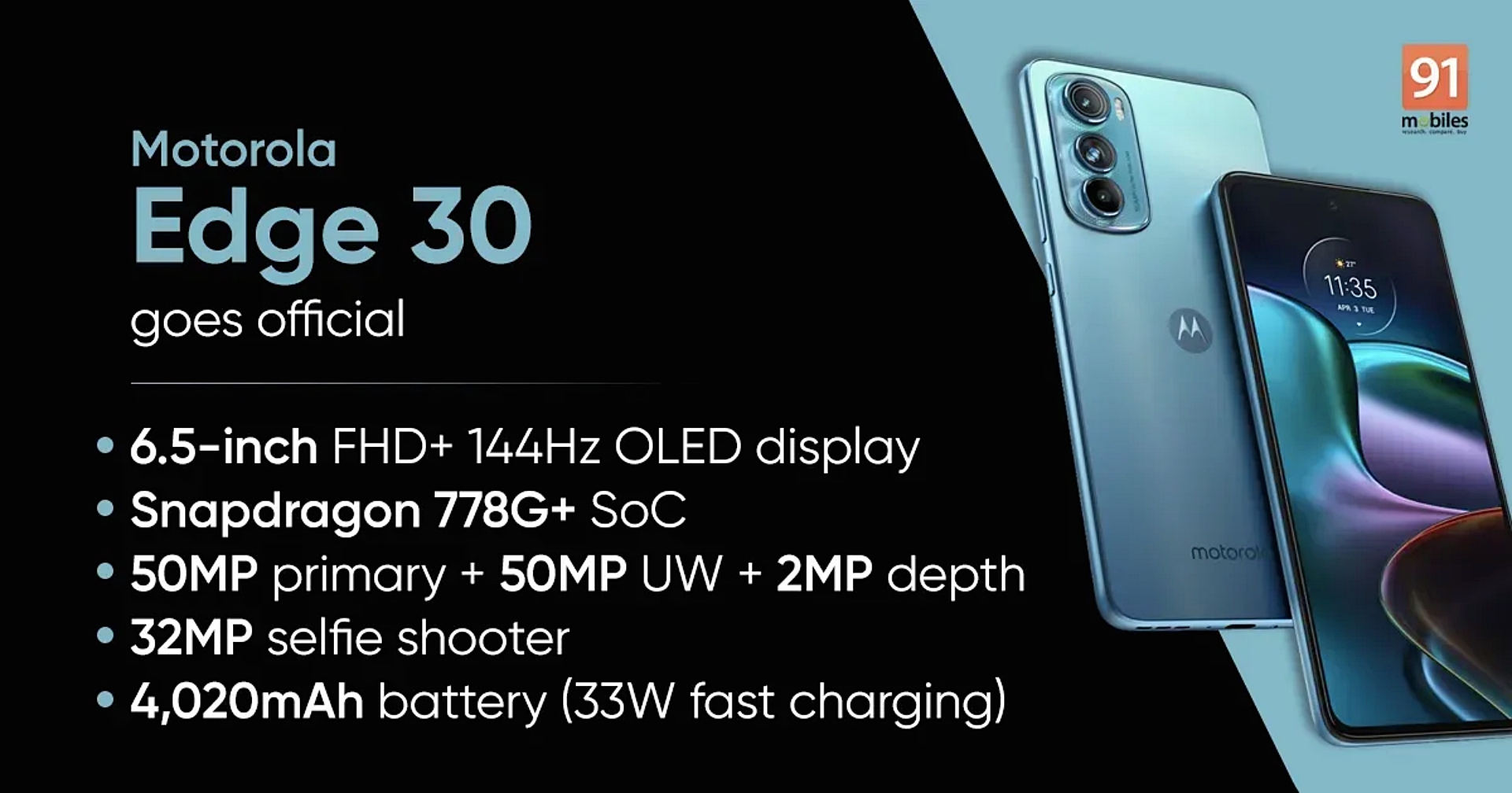 모토로라 엣지 주요 스펙을 보면 6.5인치 FHD+ 144Hz OLED 디스플레이가 적용 되었고 AP는 퀄컴 스냅드래곤 778G+ 입니다.