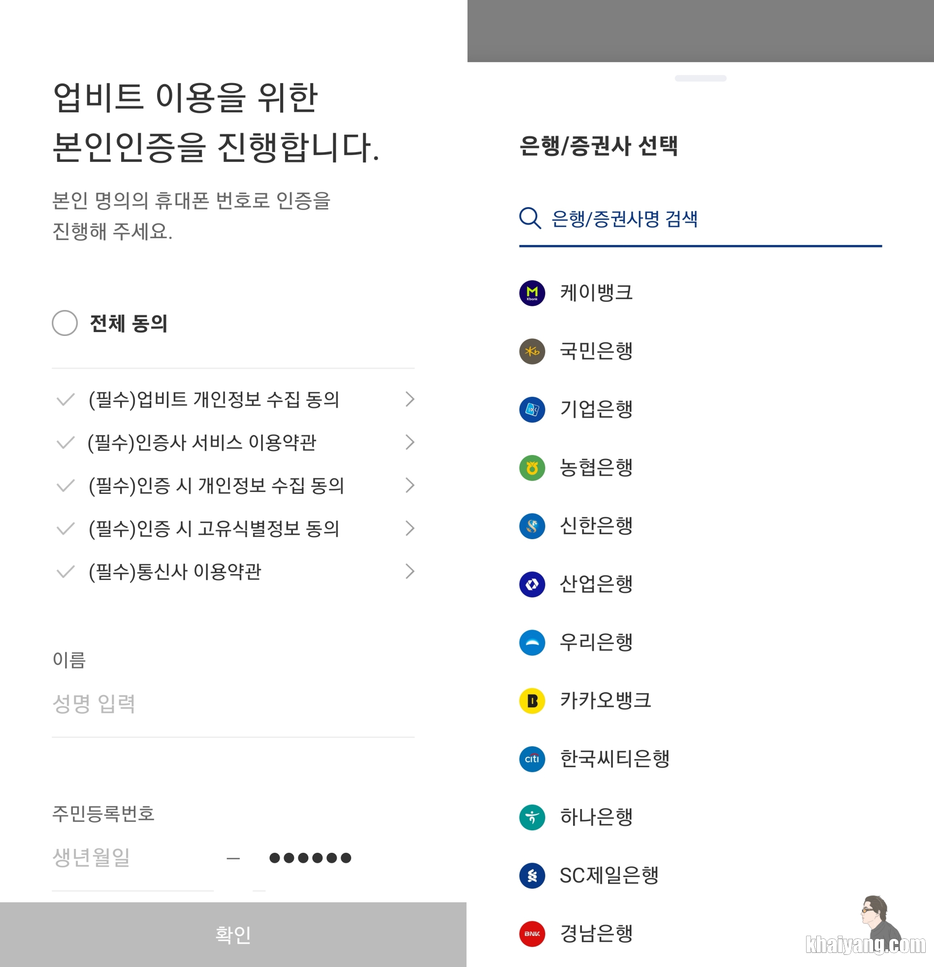사용하는 은행중에 아무거나 계좌번호 적어서 인증을 할 수 있습니다. 업비트라서 주거래 은행인 케이뱅크만 되는거 아닌가 할 수 있는데, 평소 거래하는 은행 아무거나 편하게 계좌로 인증해 주시면 됩니다.