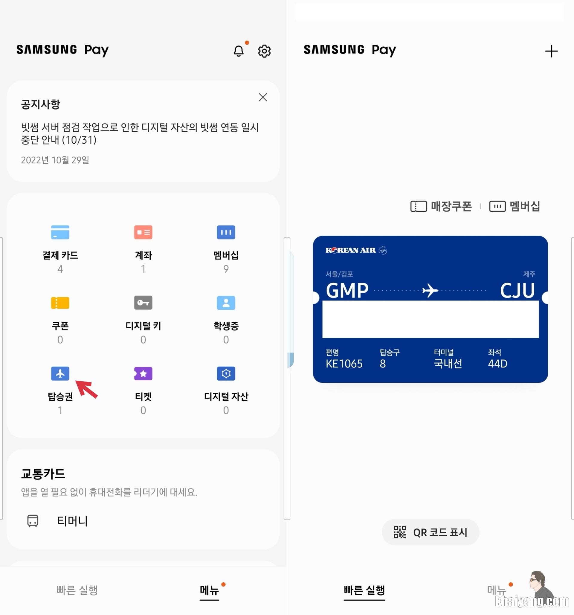 삼성페이 앱에서 언제든지 쉽게 바로 탑승권 꺼내서 확인할 수 있기 때문입니다.