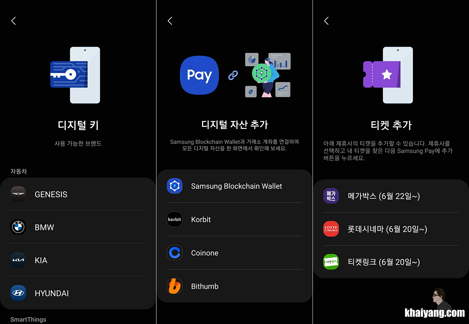 비행기 탑승권 연동 외에도 디지털키(제네시스, BMW, 기아, 현대차), 디지털 자산(삼성 블록체인 월렛, 코빗, 코인원, 빗썸), 티켓(메가박스, 롯데시네마, 티켓링크)도 이용할 수 있습니다.