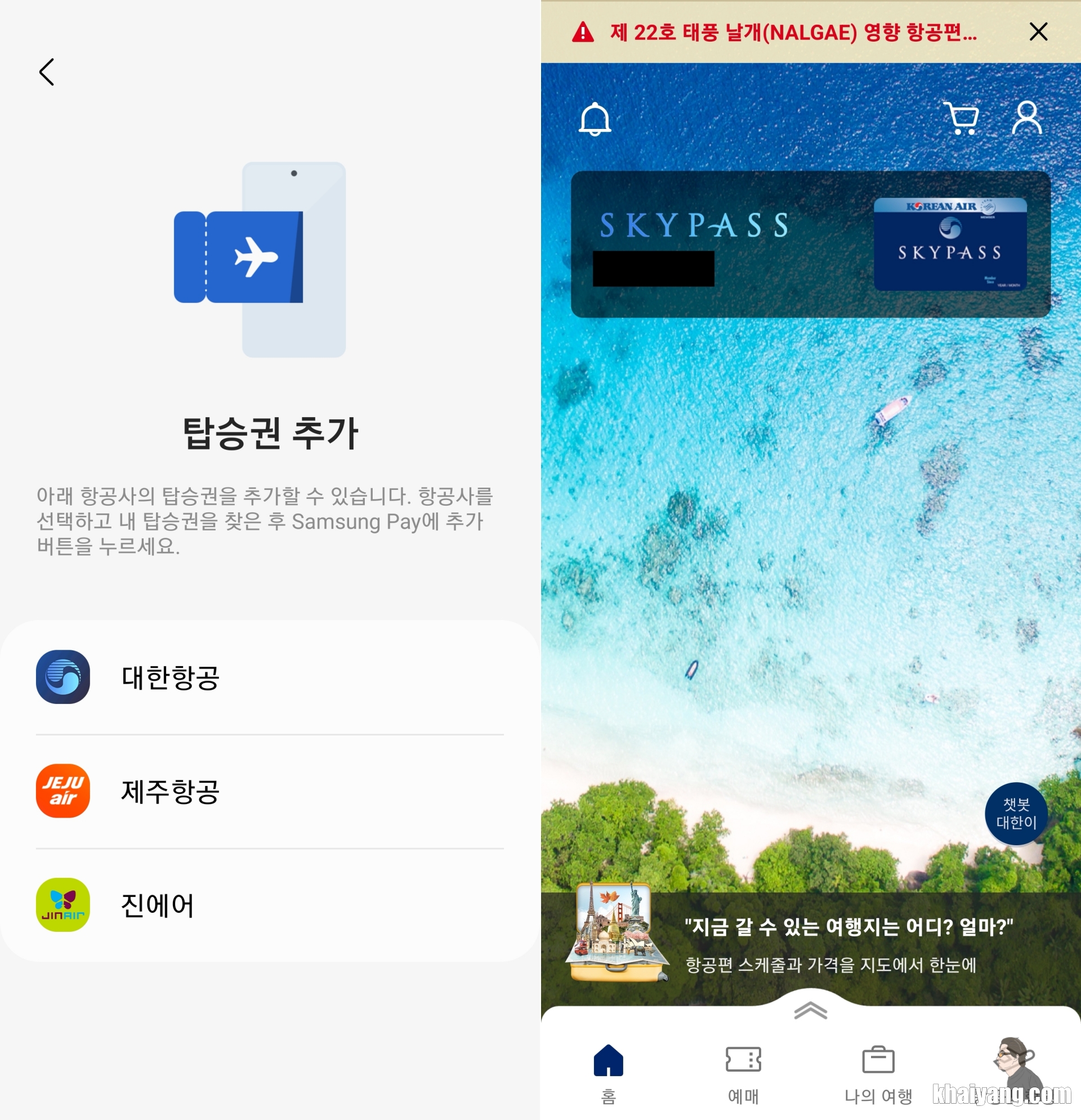 삼성페이 항공권 연결하기! 대한항공 비행기표 등록방법