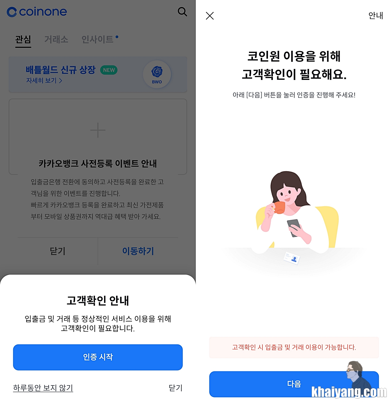 코인원 이용을 위해서는 고객 확인이 필요 합니다.