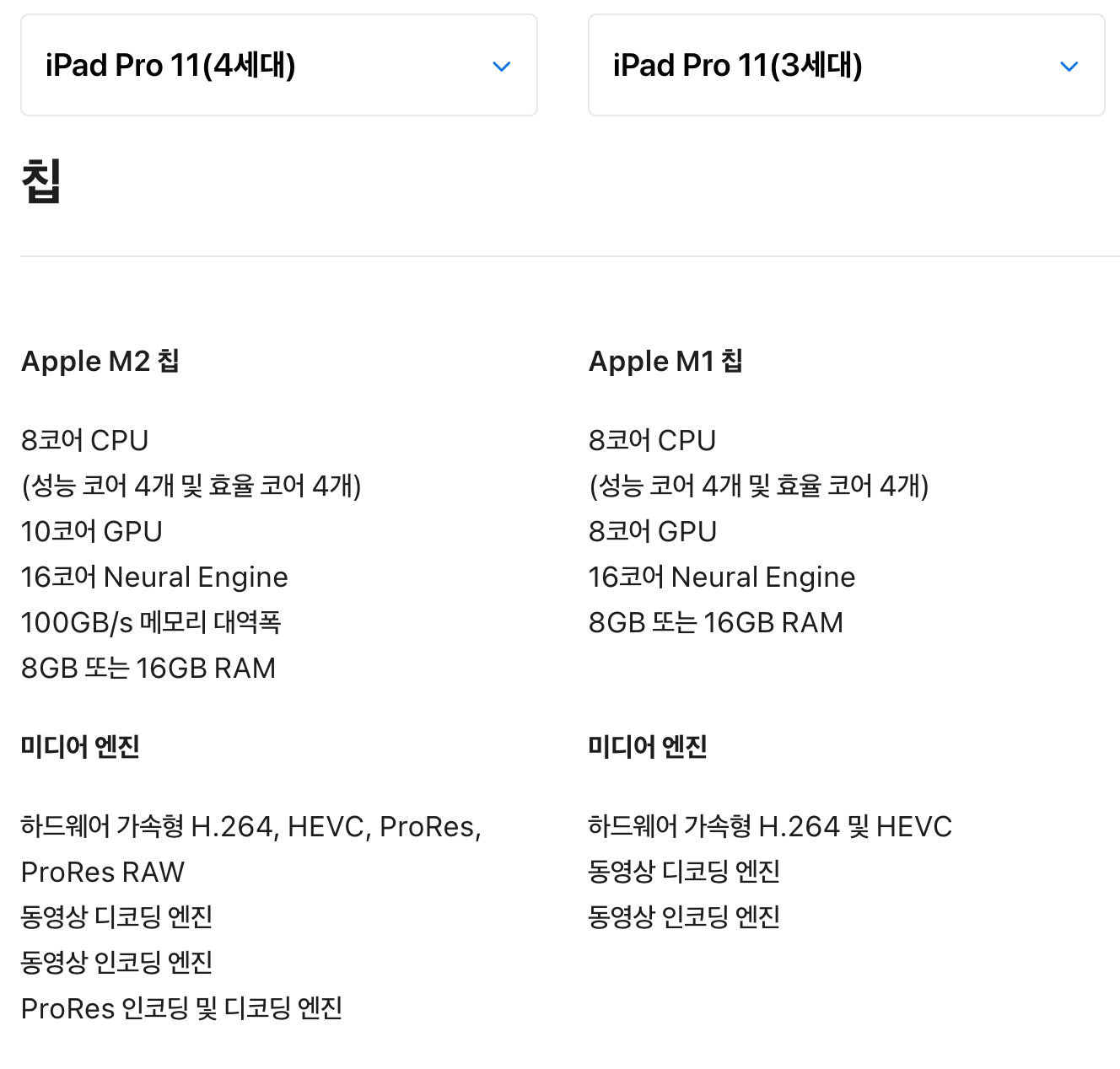 하지만 아이패드로 고성능 작업을 한다면 M2 는 좋은 선택이 될 것 같습니다.