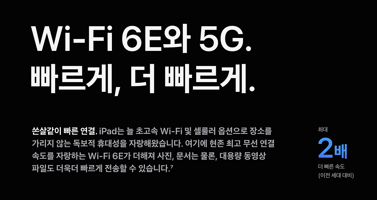 셀룰러 모델은 이전과 동일하게 5G(6Ghz 및 mmWave)를 지원 합니다. 연결성에 있어서는 신형 아이패드 프로가 좀 더 좋은 모습을 보여주고 있습니다.