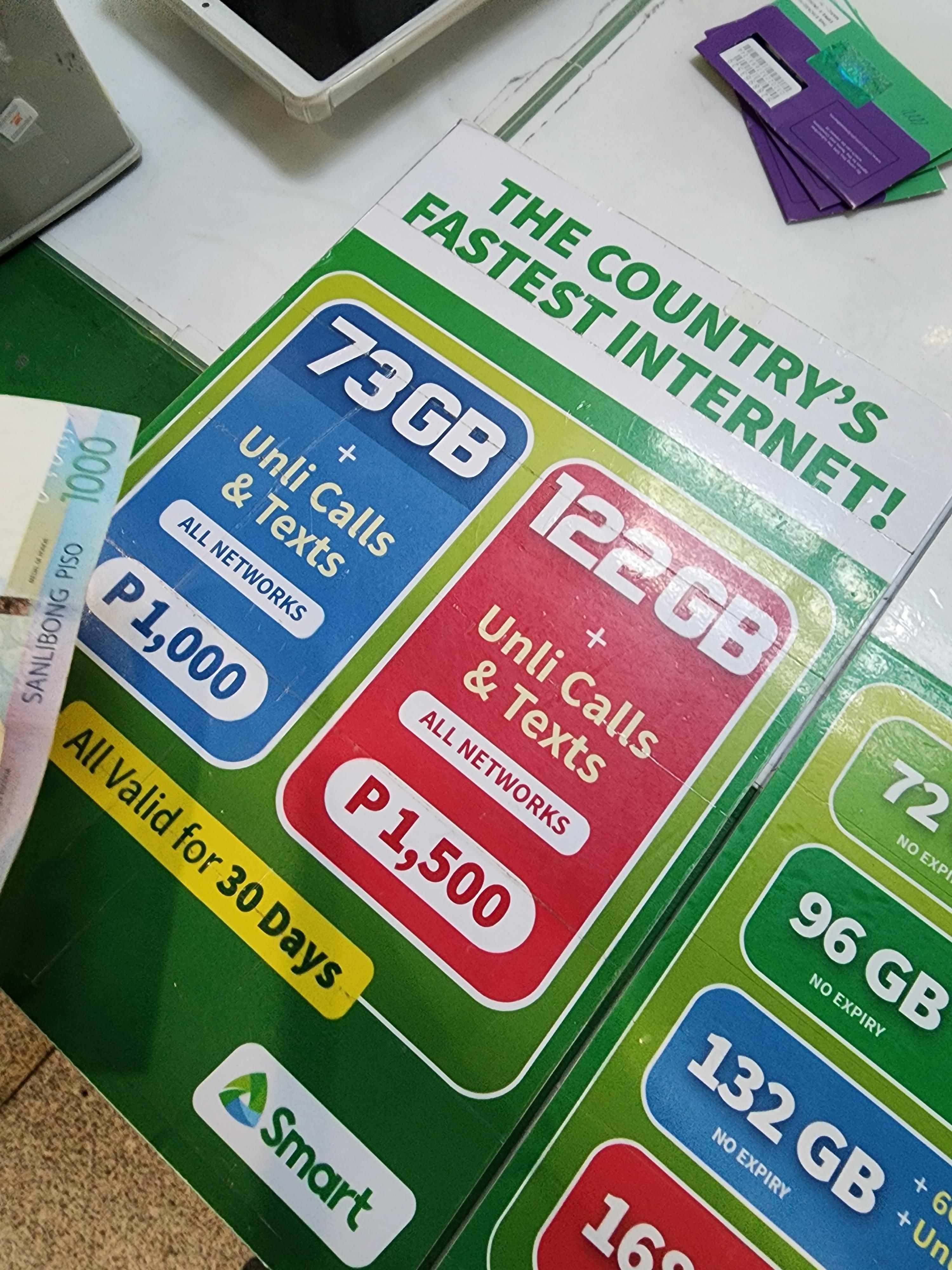 필리핀 통신사 '스마트(Smart)' 부스에서 발견한 요금제 입니다. '글로브(Globe)'도 대략 비슷한 것 같았습니다.