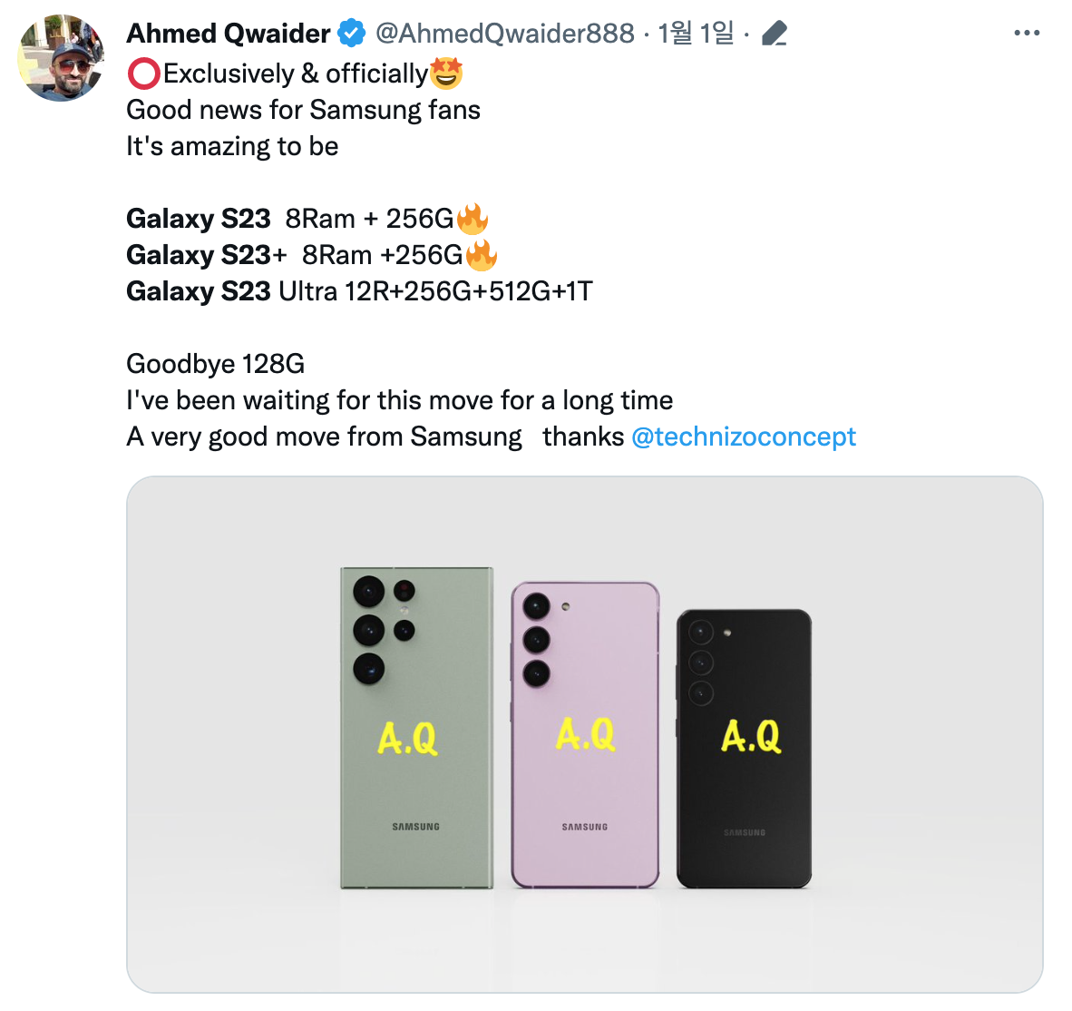 갤럭시S23 울트라 정말 이렇게 나올까?평평한 화면, 12GB램, 컬러
