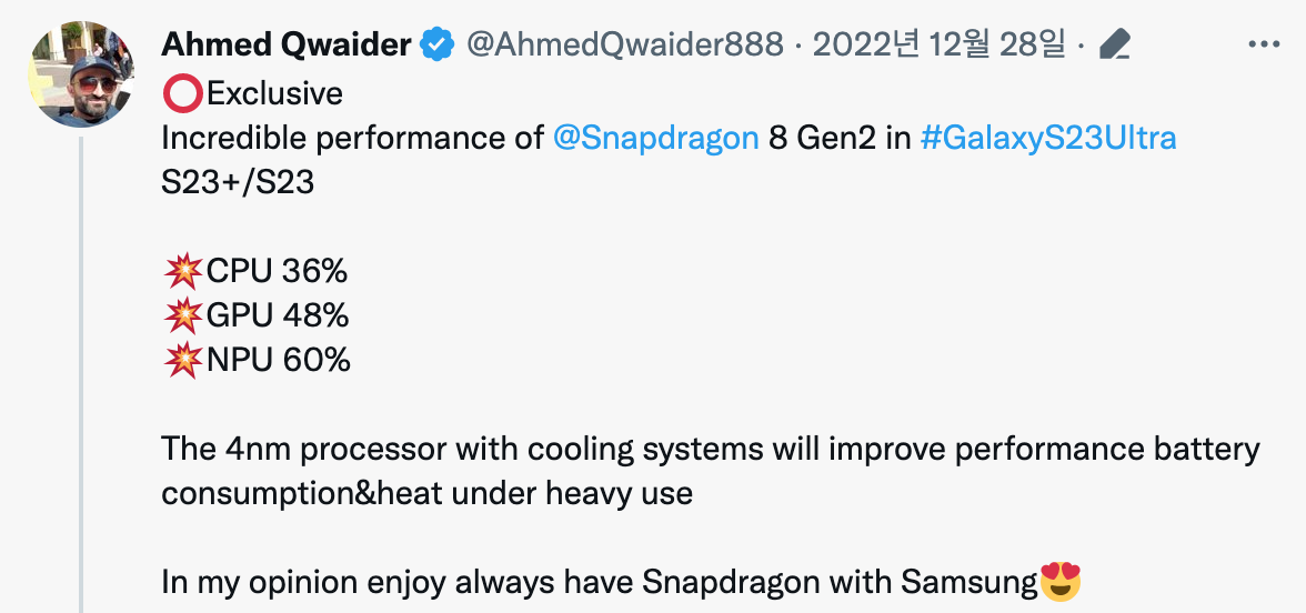 갤럭시S22 울트라가 AP 성능 부족에 대한 말들이 많았는데 S23 같은 경우는 퍼포먼스적인 측면에서 어떤 모습을 보여줄지 정말 궁금합니다.