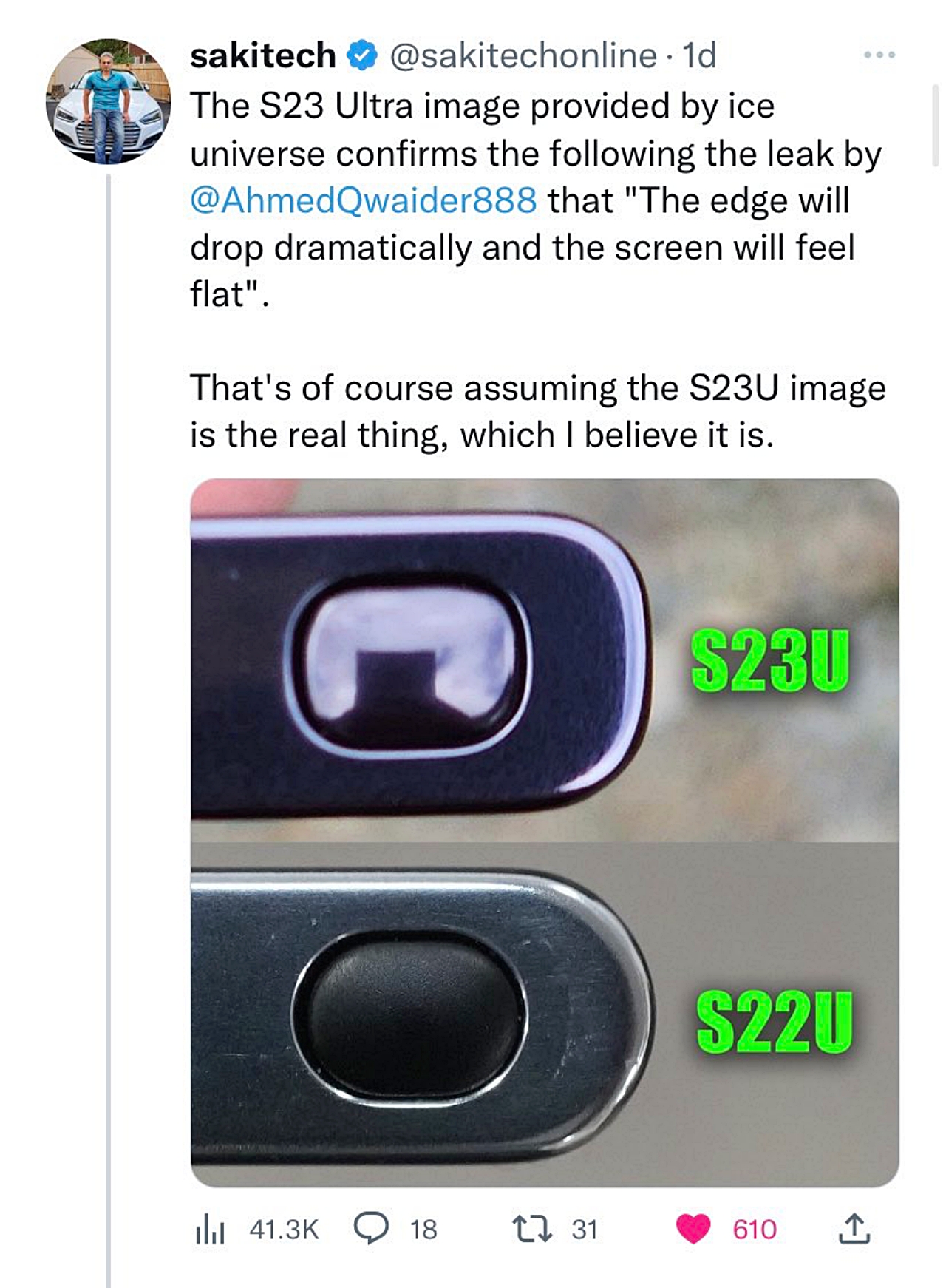 이렇게 양쪽 입장에 대한 견해가 크다 보니 삼성도 참고해서 최대한 적절한 곡률을 가진 화면을 탑재한 갤럭시S23 울트라를 선보일 예정인 것 같습니다.