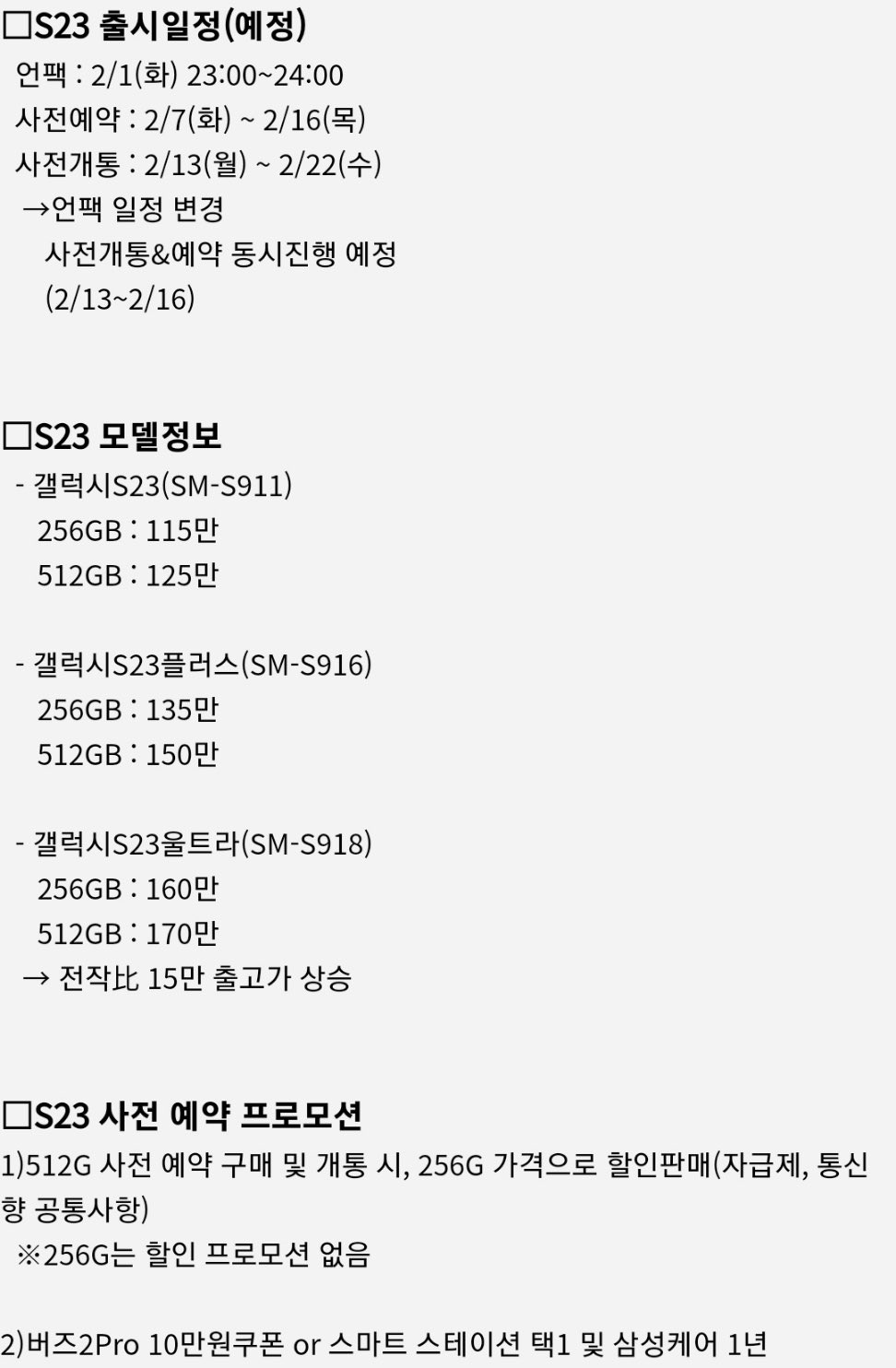 갤럭시S23 시리즈 출시가 얼마 남지 않았습니다. 2월 2일 한국 시간 새벽 3시경에 언팩 행사가 진행이 되는데 벌써부터 구매를 하기 위해서 준비하고 계신분들도 많을 것 같습니다. 저 역시 기다