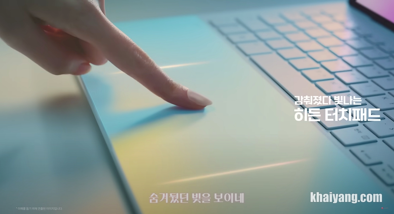 키보드 아래 공간에는 사용자가 터치할 때만 LED 불빛으로 드러나는 히든 터치패드를 탑재했습니다. 상당히 신기한 기능으로 평소에는 숨겨왔다 터치하면 나타나는 히든 터치패드 입니다.