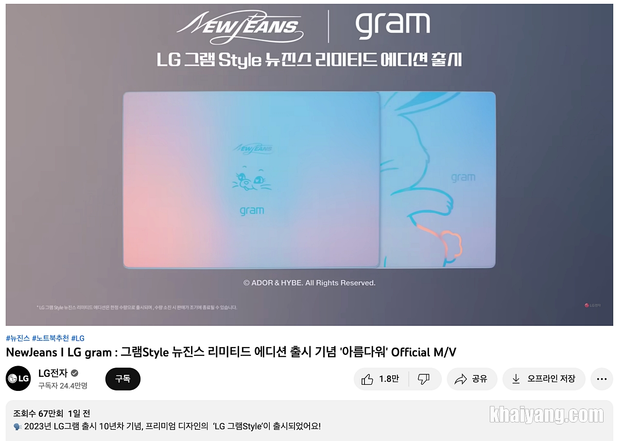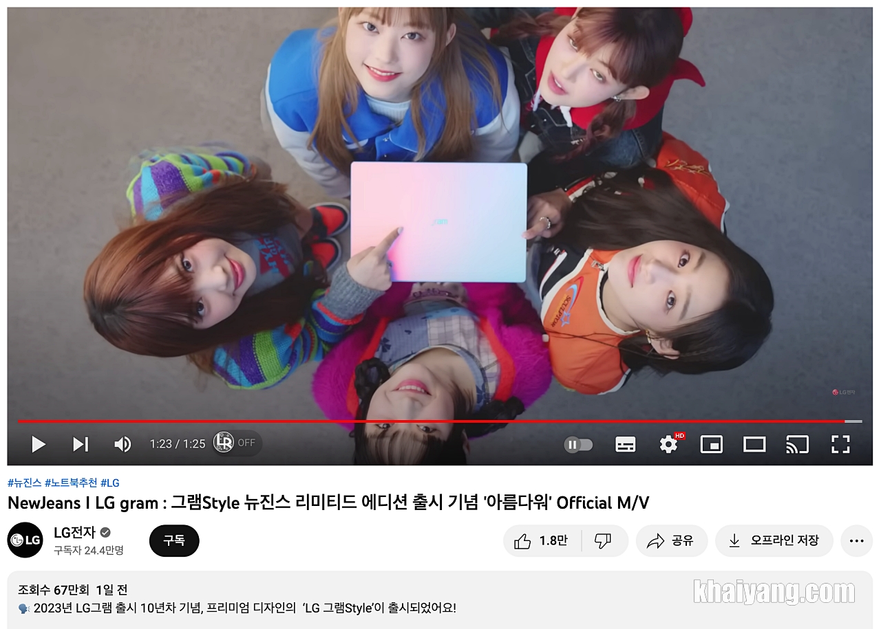 유튜브에 뉴진스 LG 그램 스타일 광고 영상이 올라왔는데 벌써부터 반응이 뜨겁더군요. 댓글부터 뉴진스 국내팬 뿐만 아니라 해외팬까지 달고 있고 조회수도 상당히 높은 편 입니다.