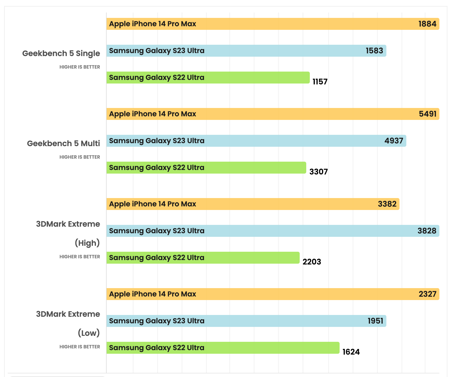 벤치마크 테스트를 보더라도 아이폰 14 프로 맥스에는 조금 밀리지만 갤S22 대비 큰 폭의 성능 향상이 이루어진 것을 볼 수 있습니다.