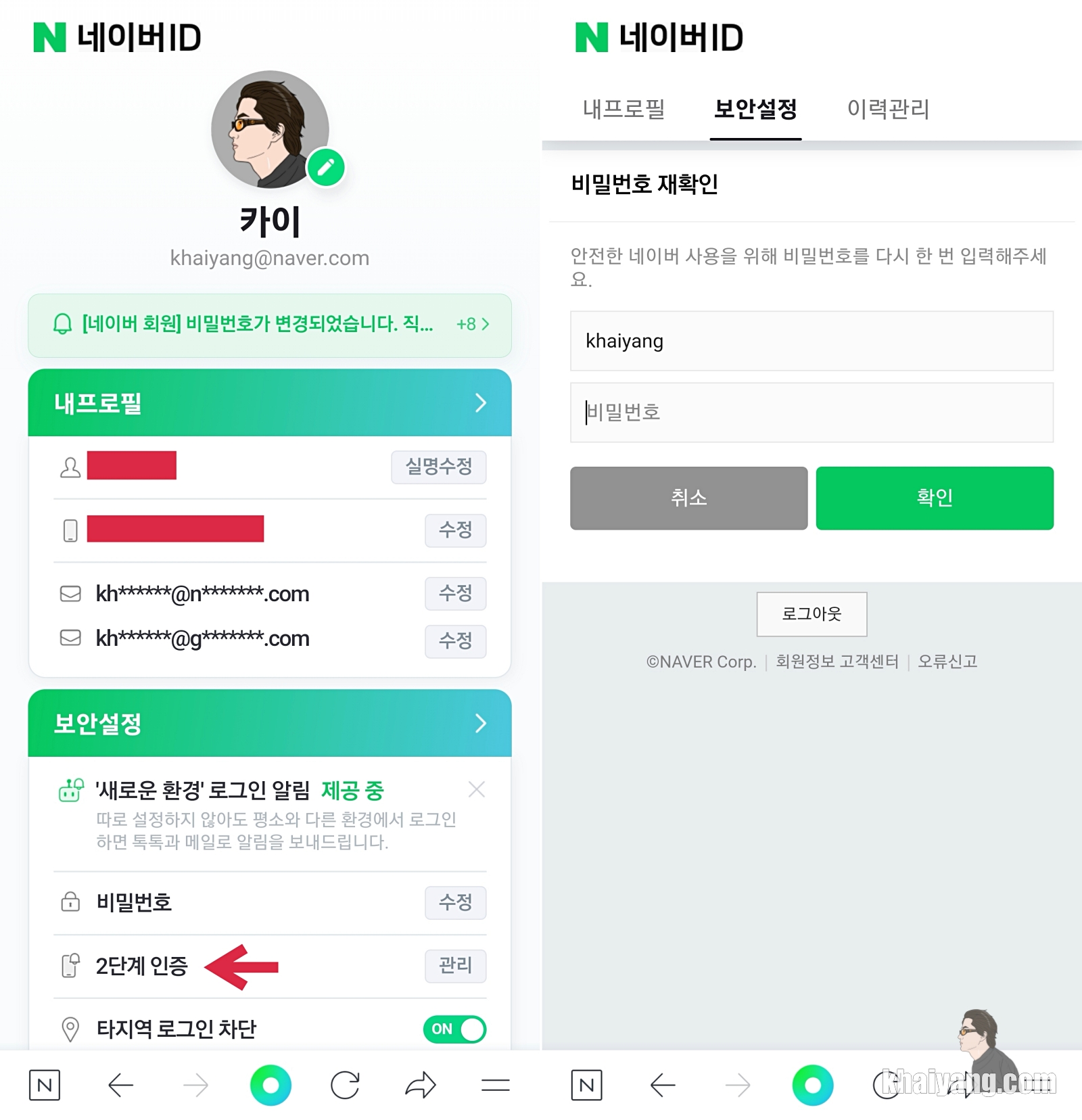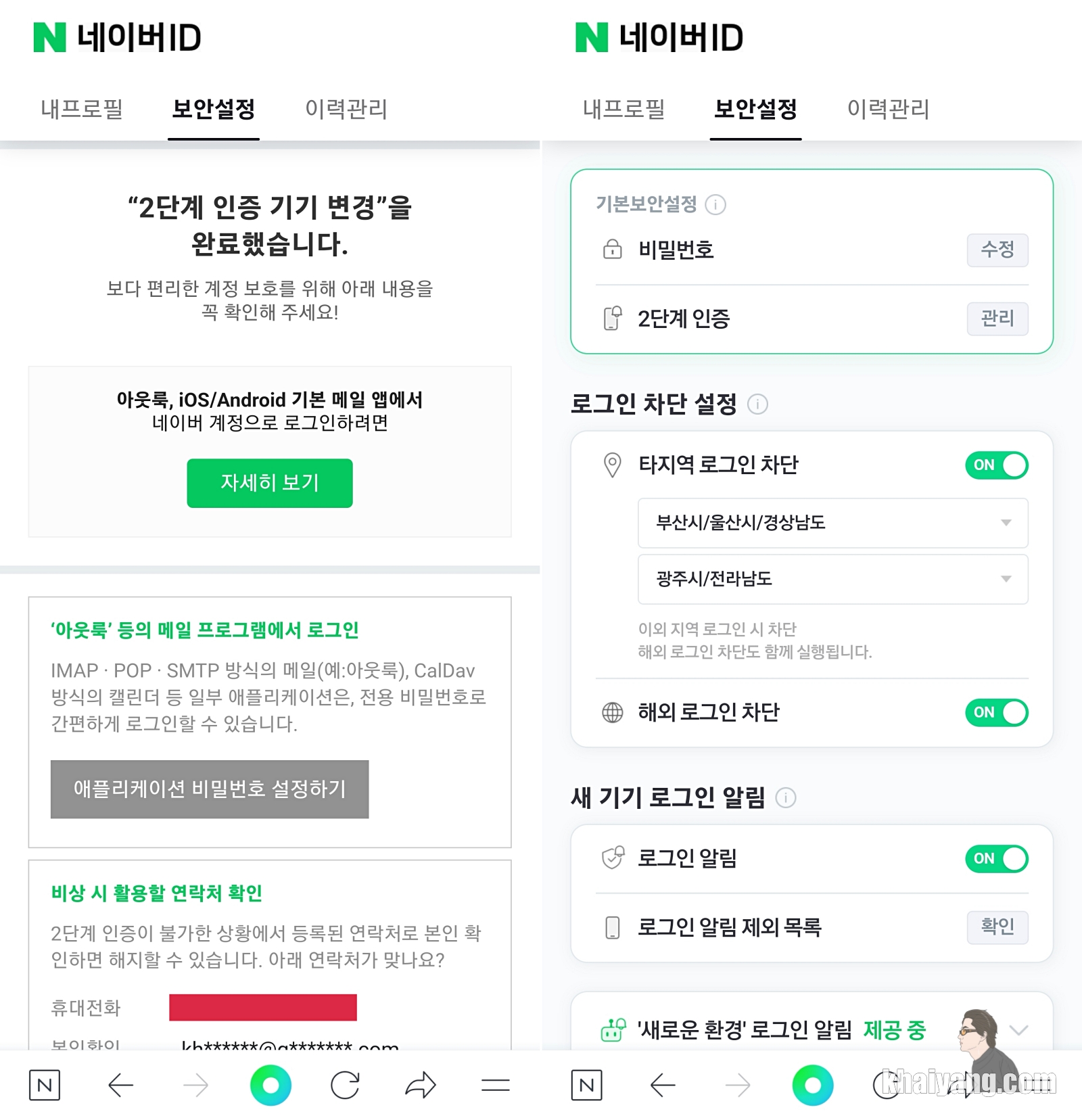 이 정도는 해놔야 네이버 해킹에서 어느정도 안심할 수 있으니 이 부분은 꼭 미리 설정해 놓으시기 바랍니다.